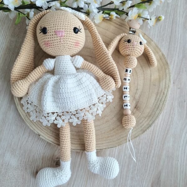 Unser 2er Set Hase ist das ideale Geschenk zur Geburt, Taufe oder Babyparty. Es enthält eine Schnullerkette sowie einen grossen Häkelhasen. Überrasche deine Liebsten mit diesem tollen Set!
