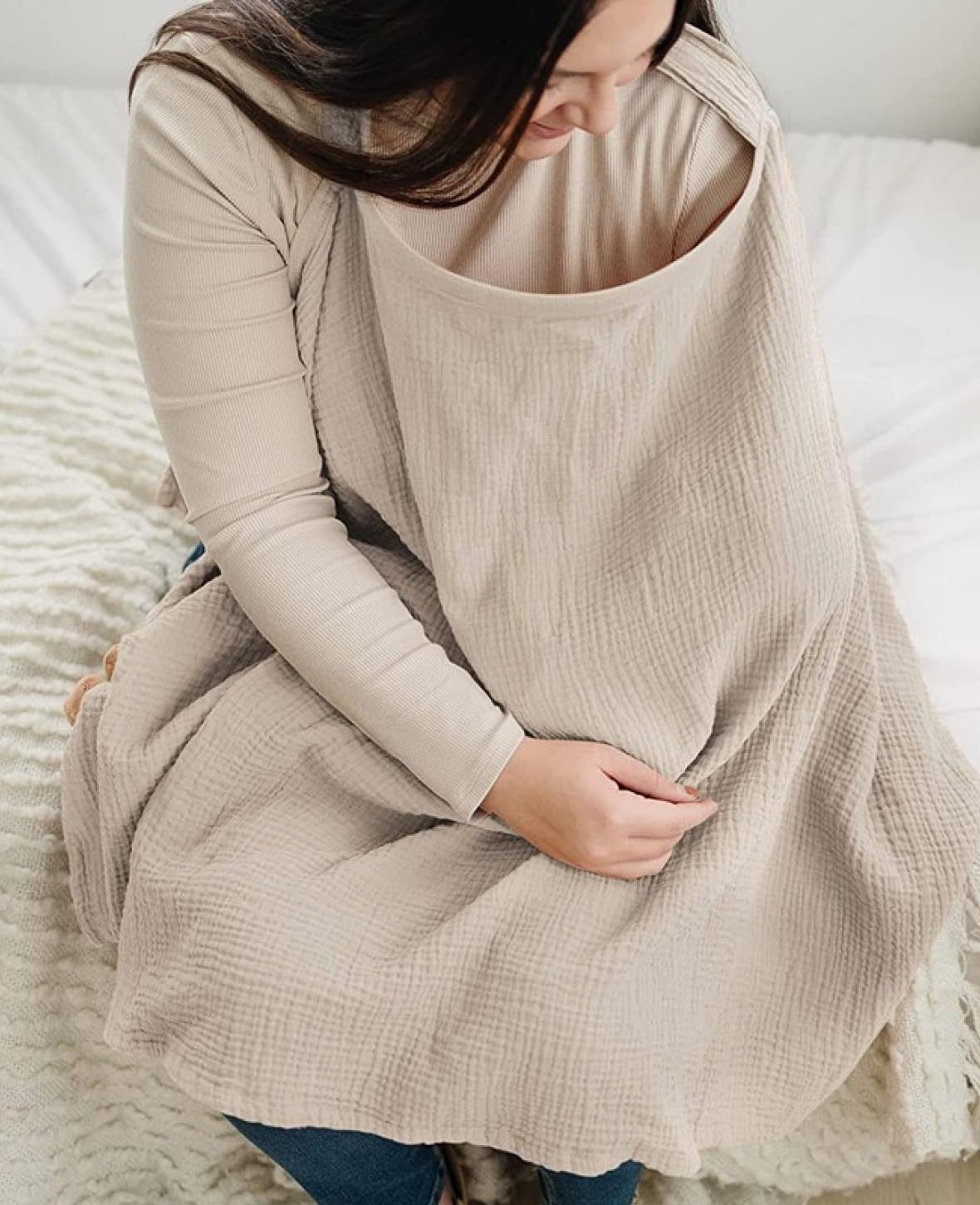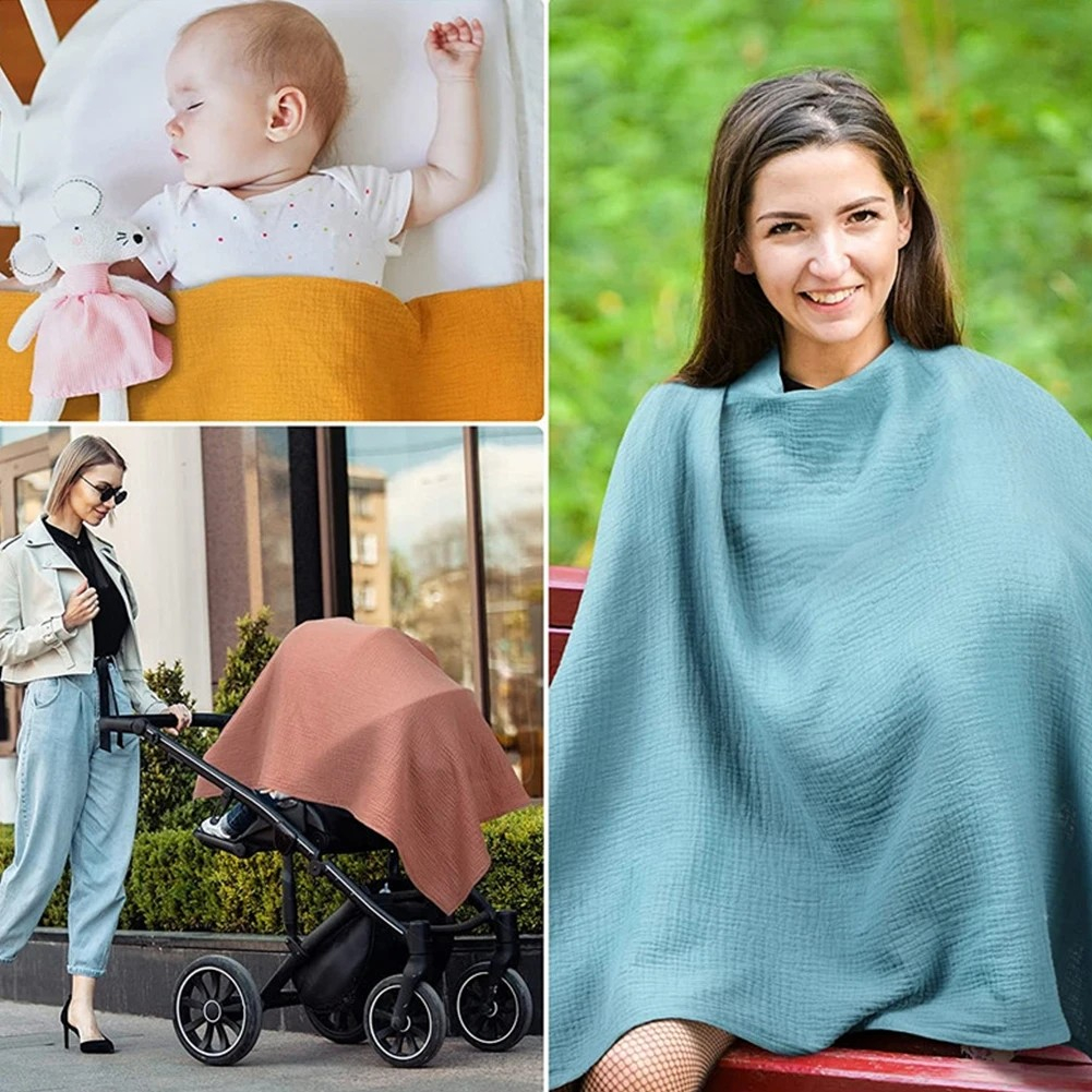 (95x75cm) Baumwoll Baby Stilltuch Musselin Sichtschutz Stillschal Decke zum Umhängen – Beige