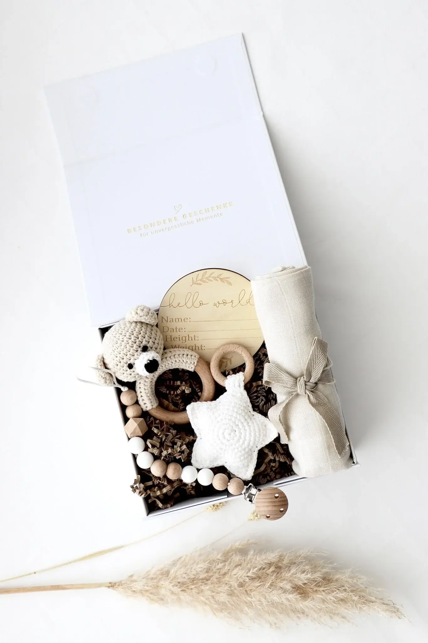 All unsere Geschenkboxen wurde mit viel Liebe und grösster Sorgfalt zusammengestellt, um den Bedürfnissen des Kindes gerecht zu werden und den Eltern viel Freude zu schenken. Sie eignen sich ideal zur Geburt, für Baby-Partys oder einfach, um frischgebackenen Eltern zu zeigen, dass man an sie denkt ♡