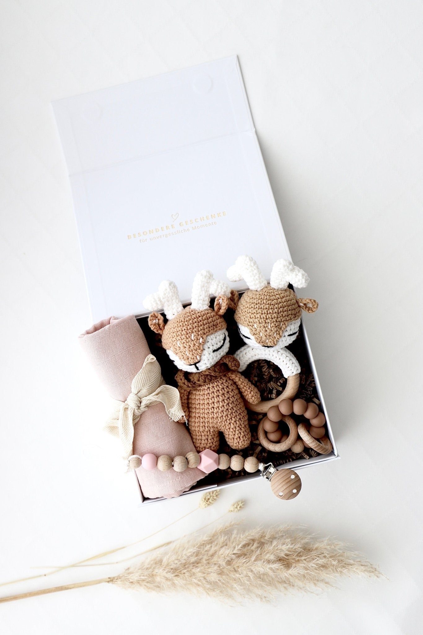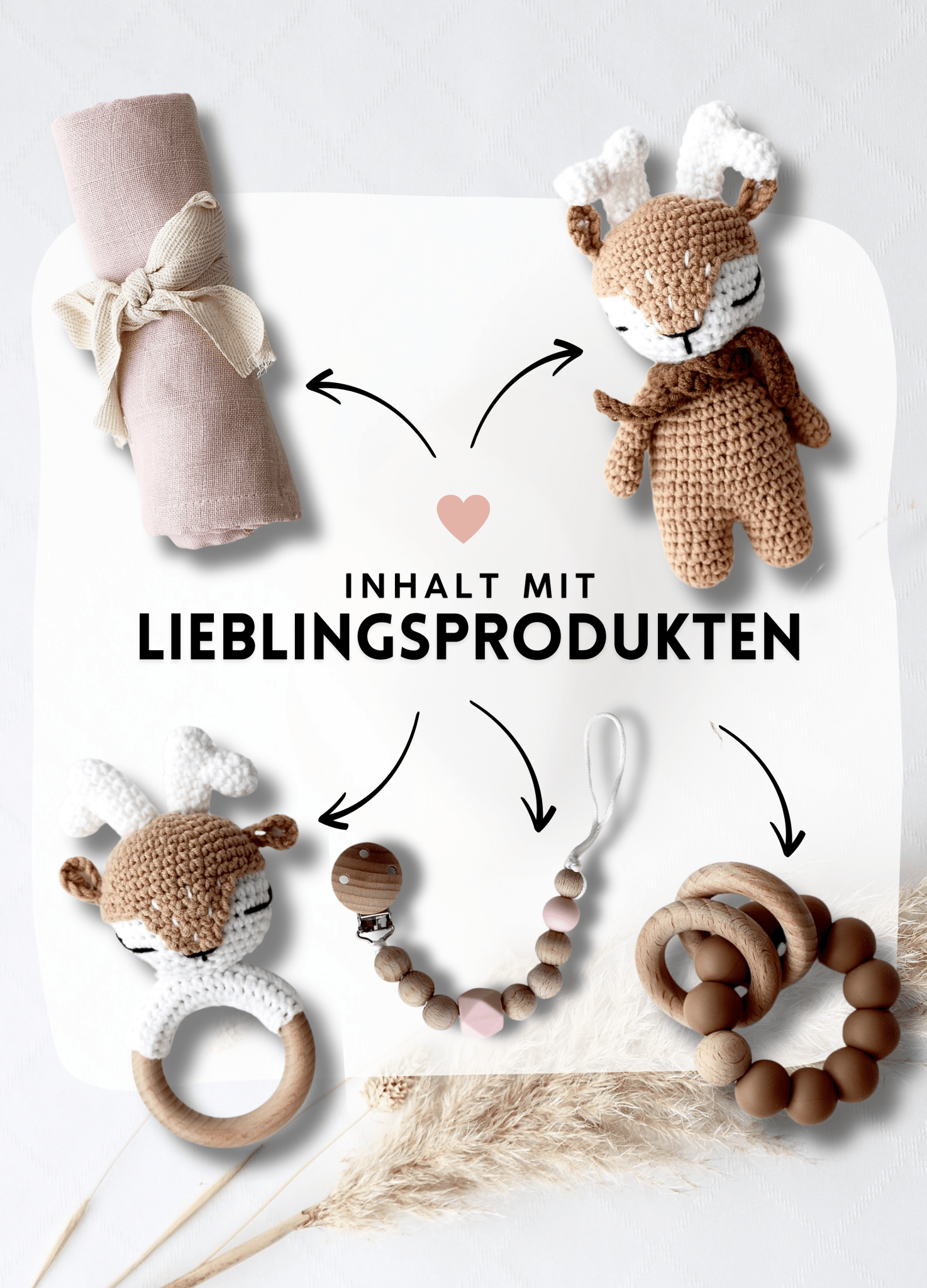 In unserer sorgfältig zusammengestellten Box findest du eine Vielzahl von liebevollen Geschenken für das Baby und seine stolzen Eltern. Unsere Baby-Geschenkbox ist vollgepackt mit allem, was das Herz begehrt, um den Start ins Leben zu versüssen.