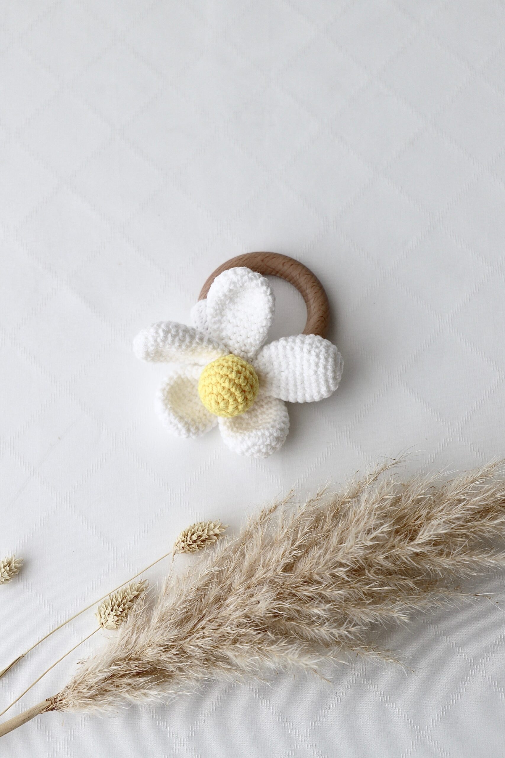 – handgehäkelter Beissring «Blume» mit Glocke