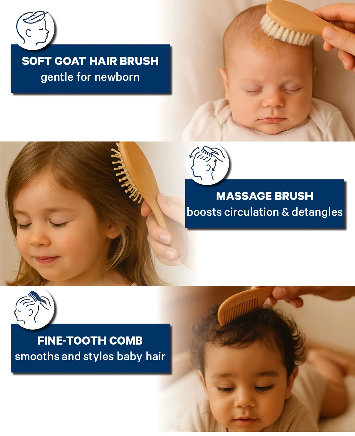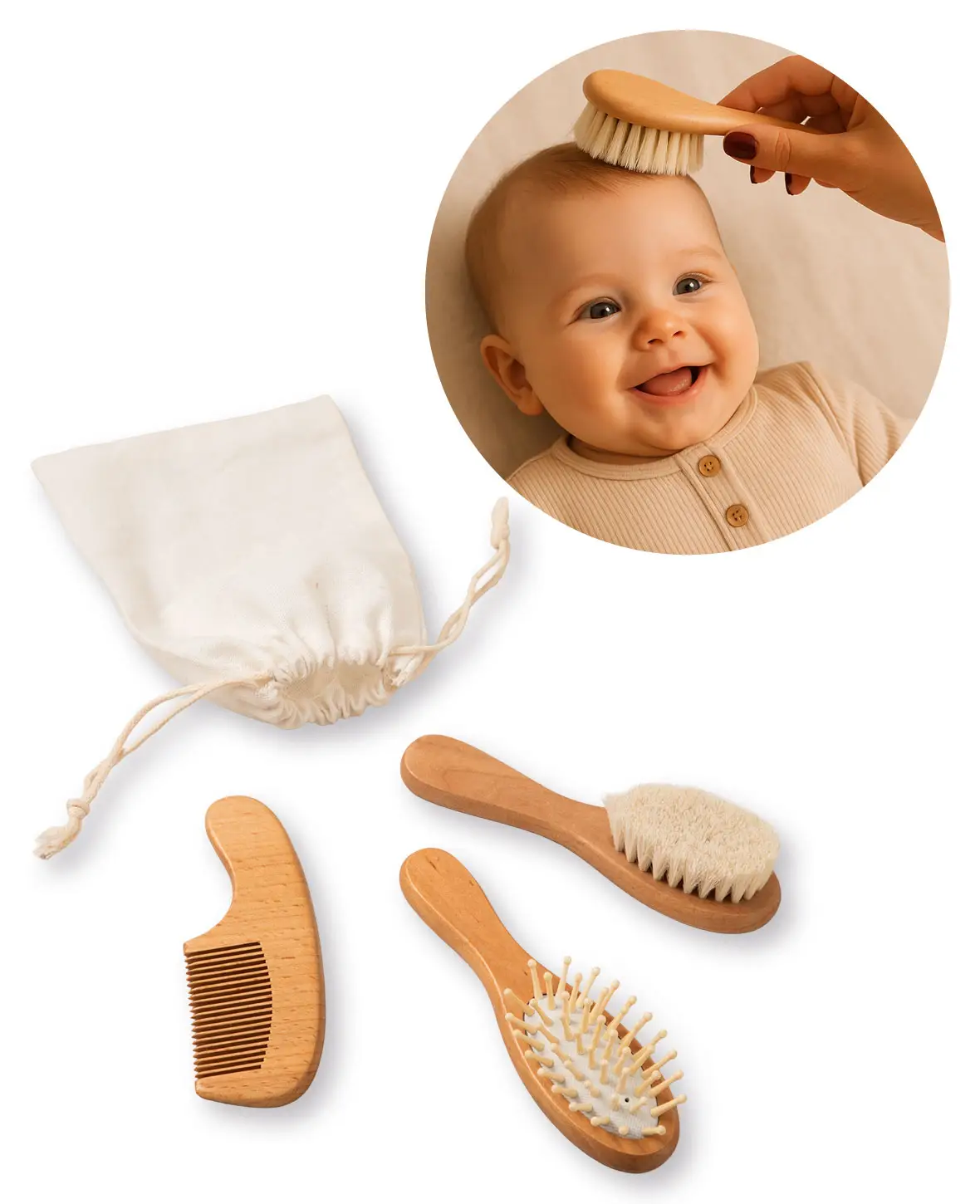 3-teiliges Baby Haarbürsten Set – Sanft zur zarten Kopfhaut