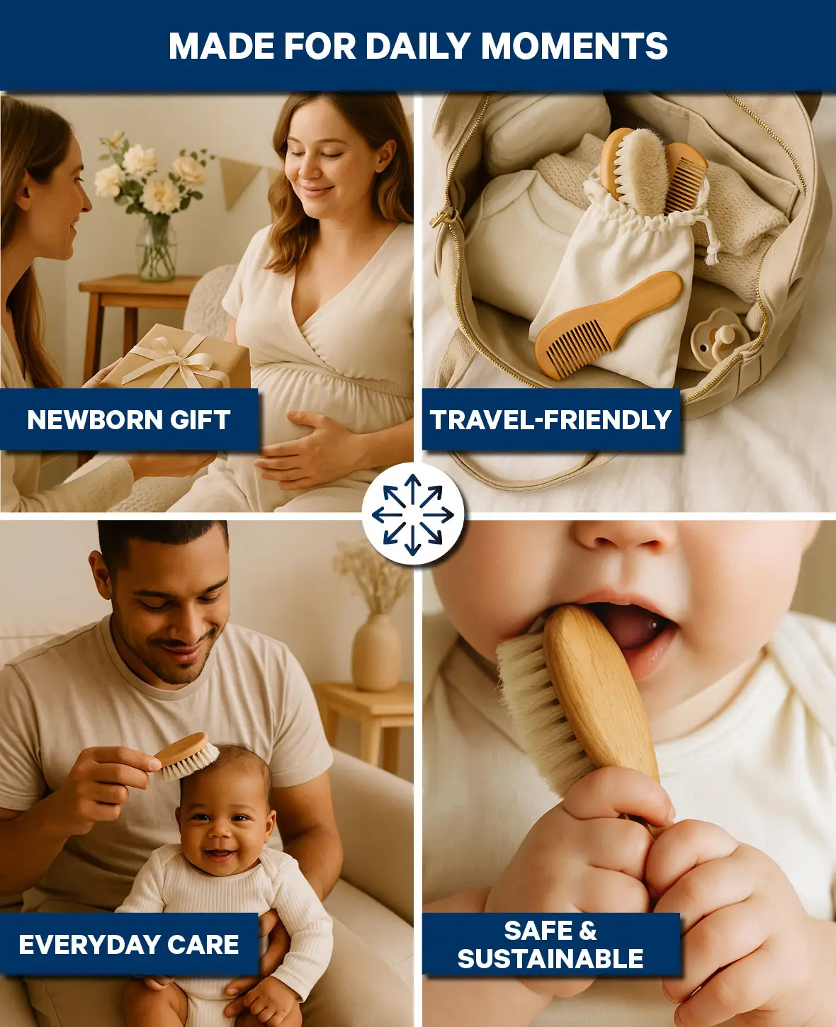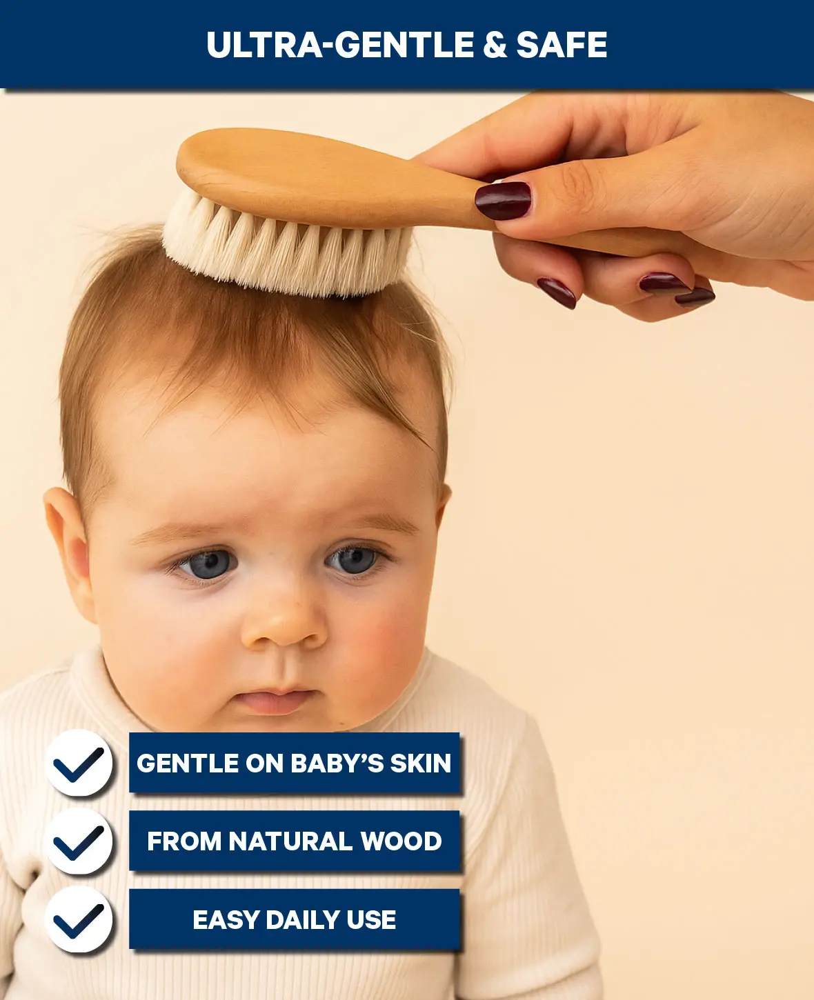 • Ziegenhaarbürste – extra weich, sanft zur empfindlichen Babyhaut