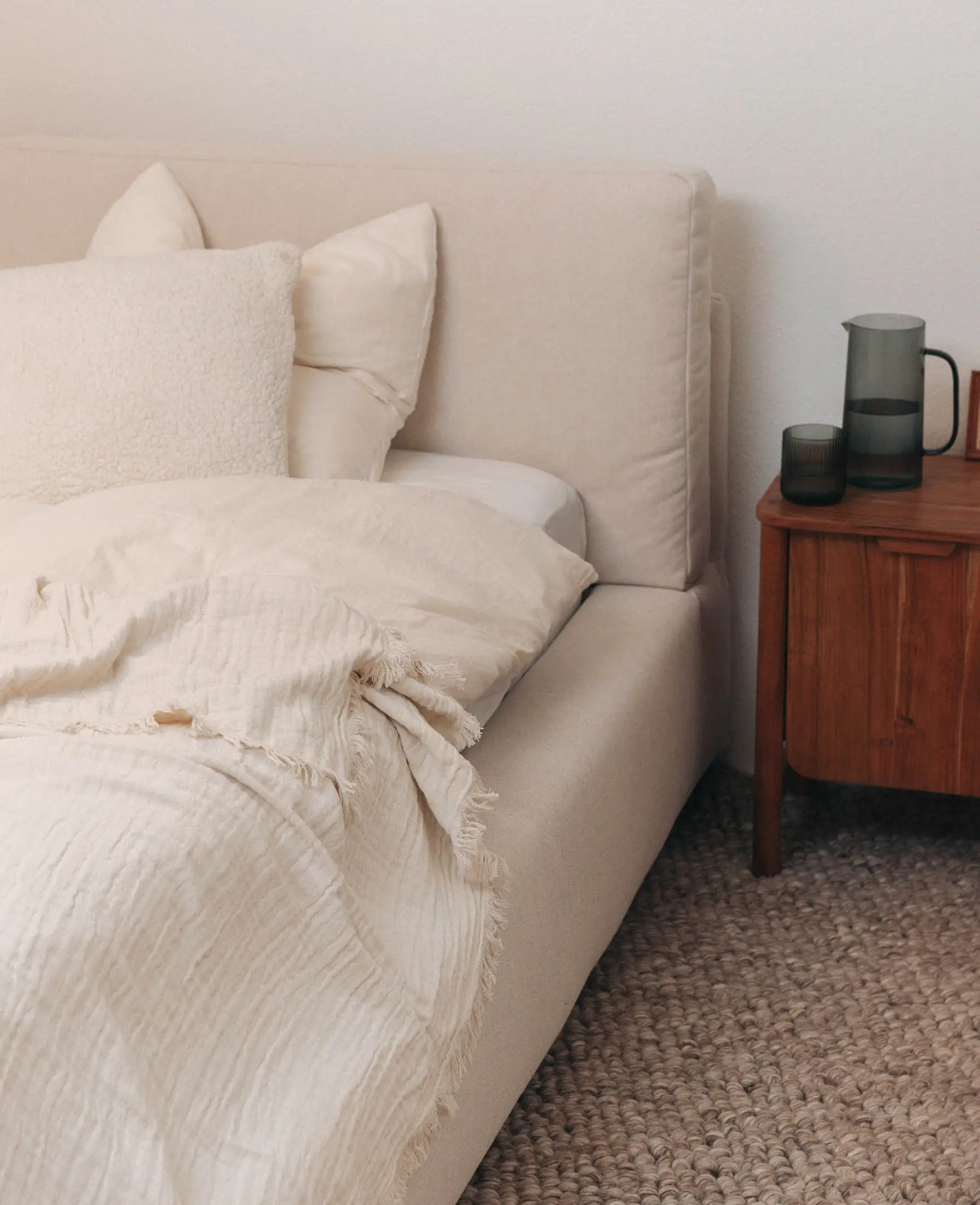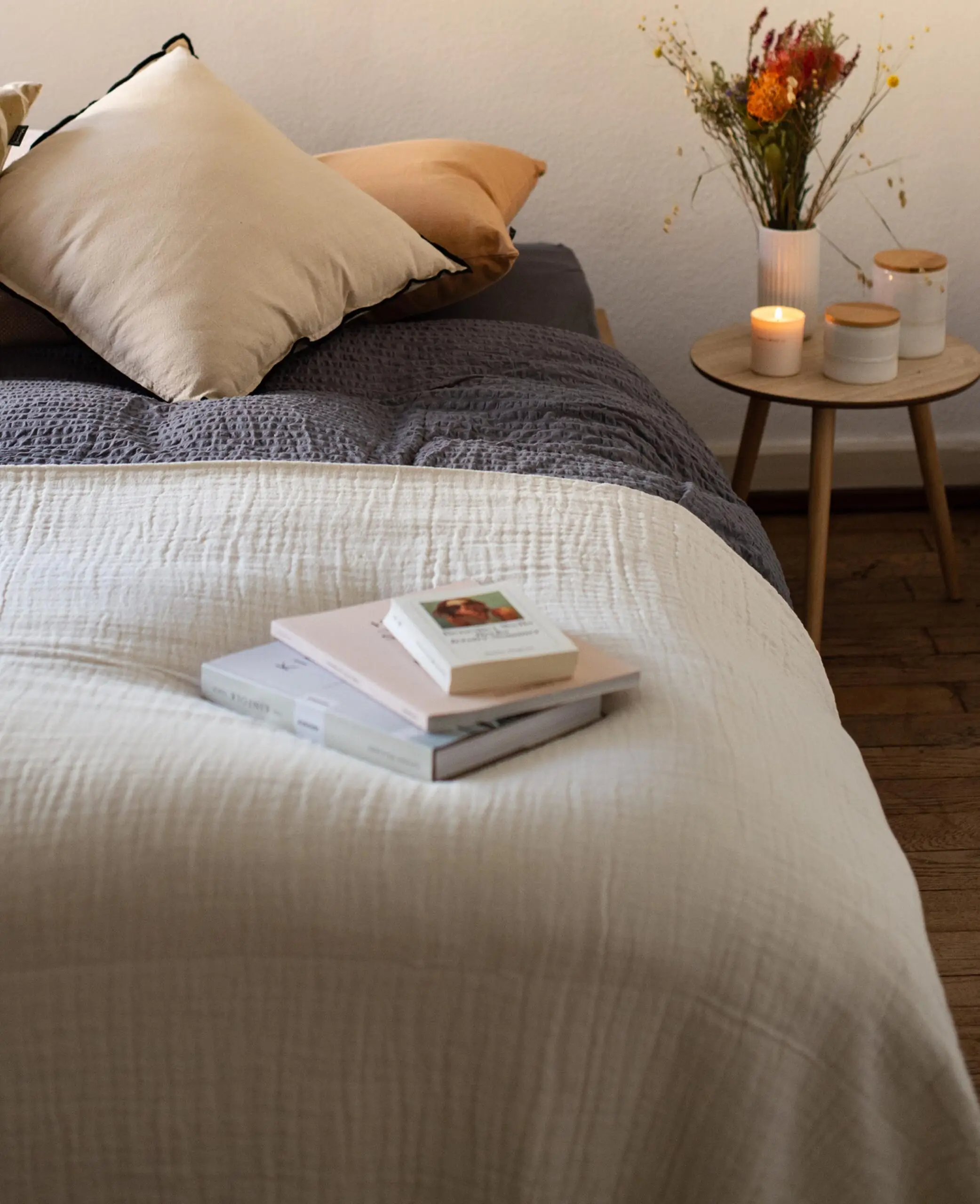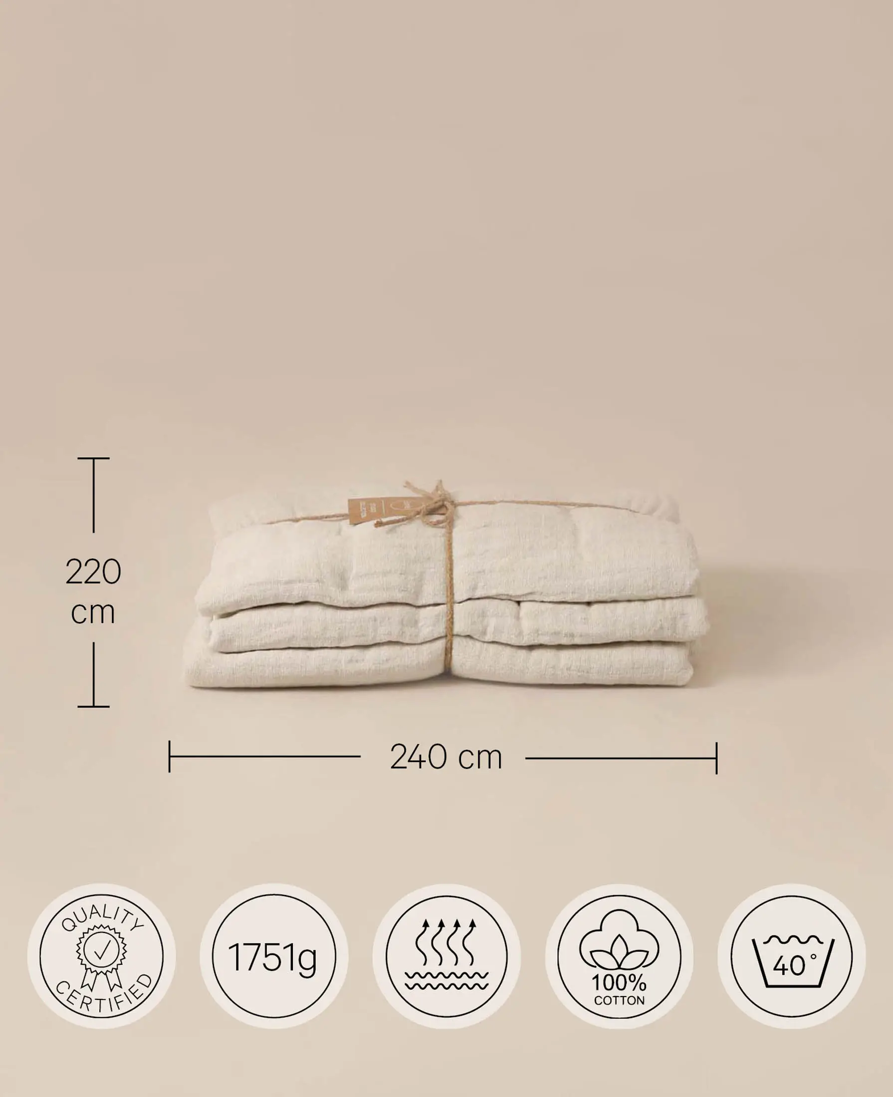 Tagesdecke aus beigem Bio Baumwoll Musselin, 220 x 240 cm