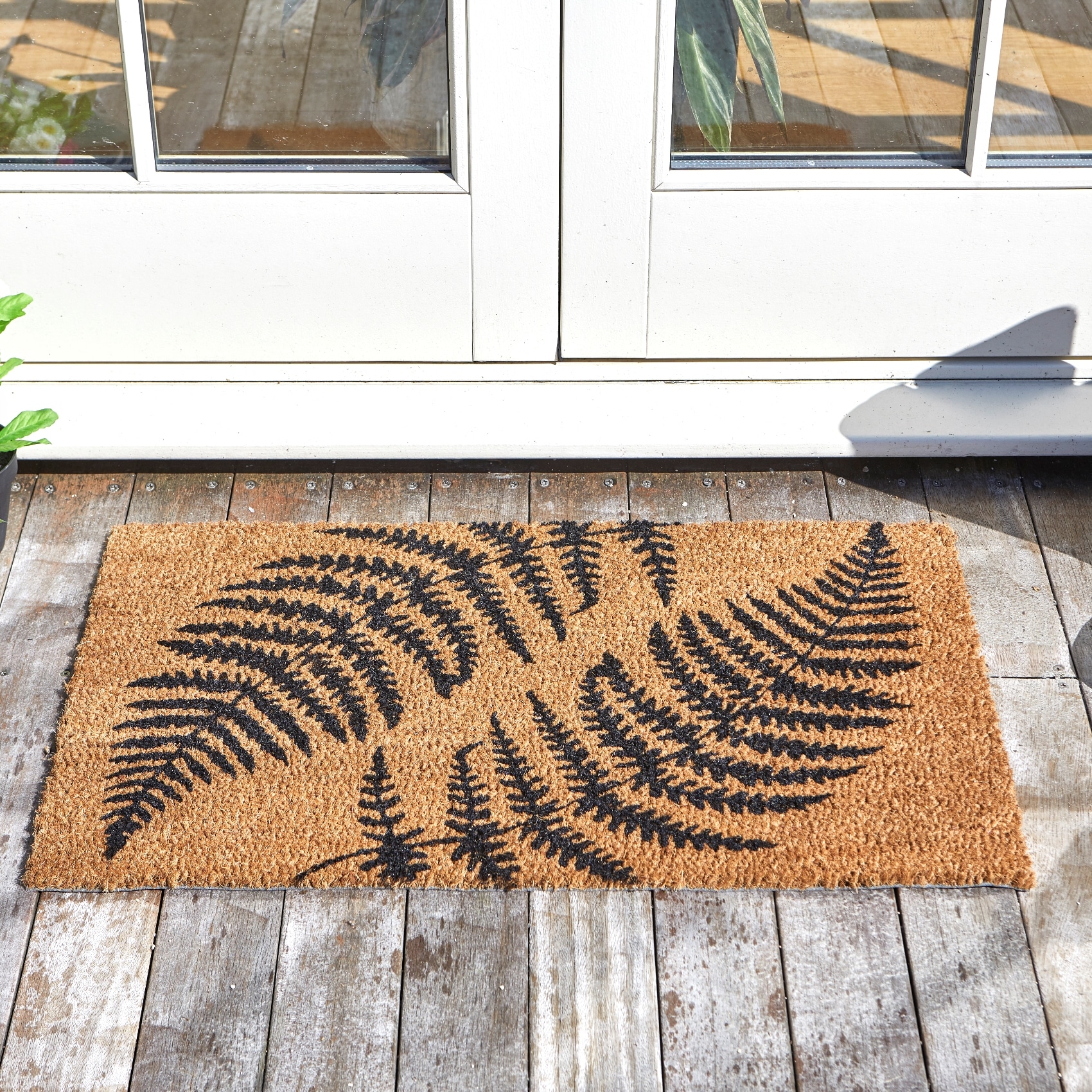 Die Fussmatte mit strapazierfähigem Obermaterial aus natürlicher Kokosfaser entfernt Schlamm und Schmutz von den Schuhen.