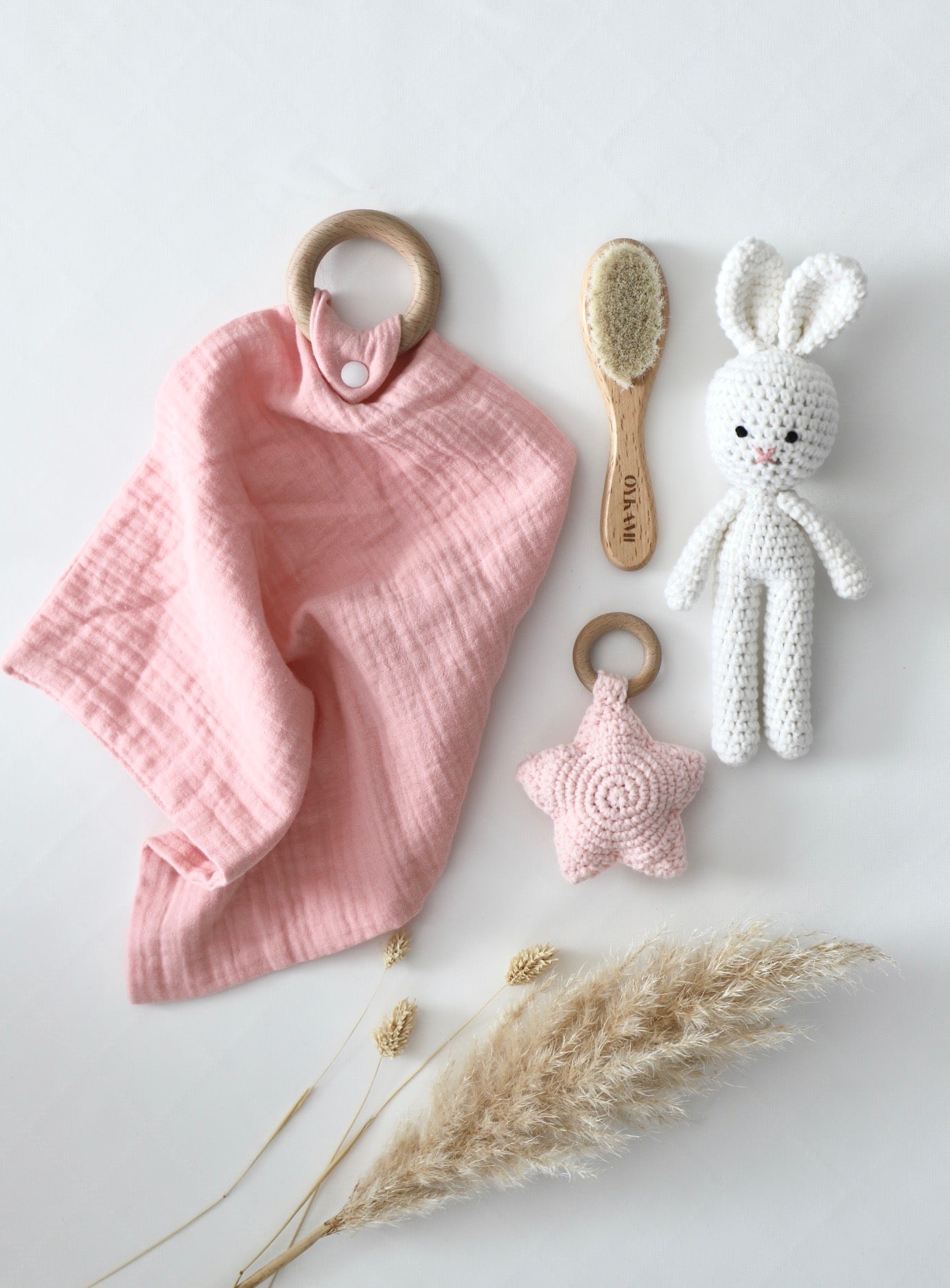 Jede Box wird in der Schweiz von Hand verpackt und enthält hochwertige, aufeinander abgestimmte Babyaccessoires in sanften, natürlichen Farben. Die Materialien sind sorgfältig ausgewählt – weich, nachhaltig und zeitlos schön.