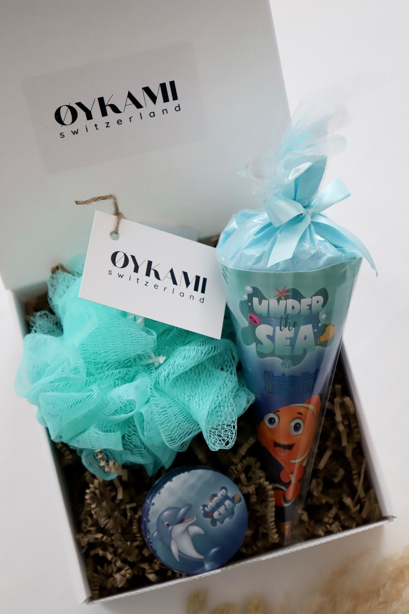 Ob für einen Kindergeburtstag, einen besonderen Anlass oder einfach als Überraschung zwischendurch – unsere Geschenkboxen sind immer die richtige Wahl! Sie enthalten alles, was Kinder für ein spassiges und zugleich pflegendes Badeerlebnis brauchen. Ergänzt wird die Box durch kleine, liebevolle Extras wie hübsche Kosmetiktaschen oder niedliche Tagebücher, die den Alltag noch ein bisschen bunter machen.