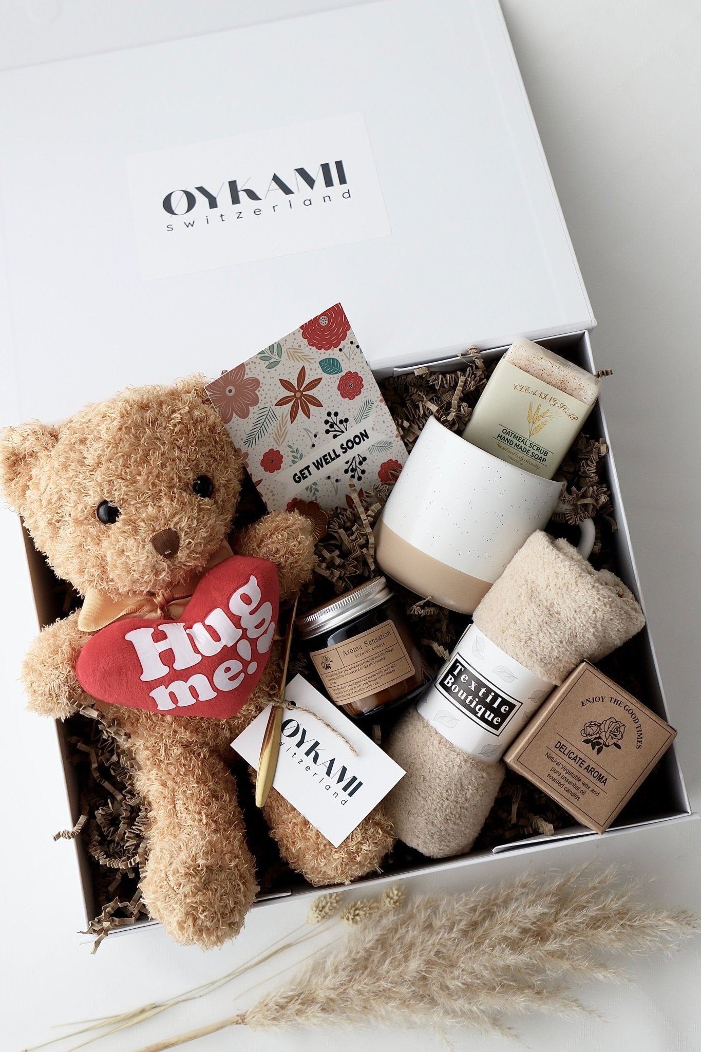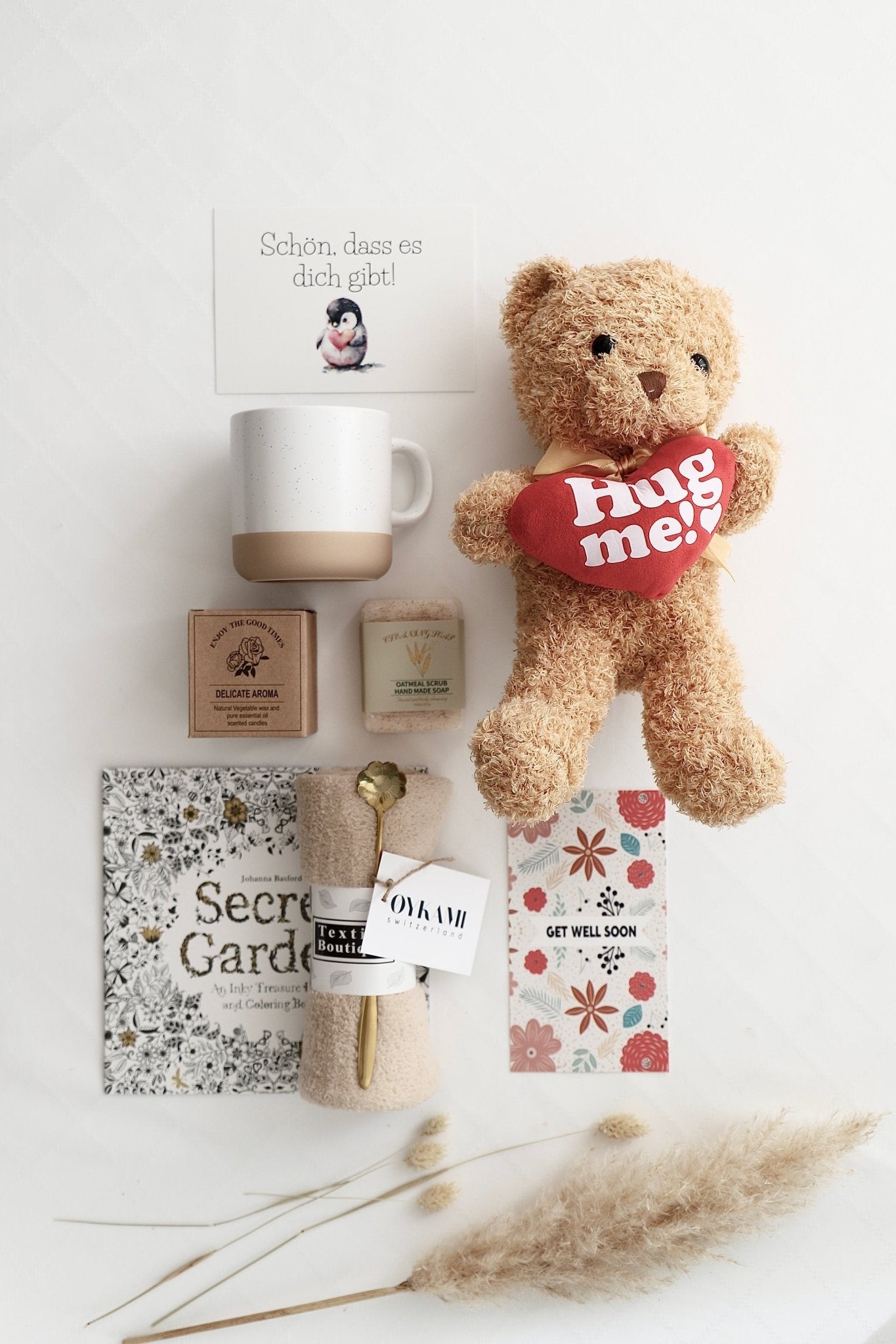 Erlebe Trost und Wärme mit unserer liebevollen Geschenkbox. Schenke dem Genesenden ein bisschen Freude und Aufmunterung mit unserer exklusiven Geschenkbox, die speziell dazu gestaltet wurde, die Heilung zu unterstützen und das Herz zu stärken.