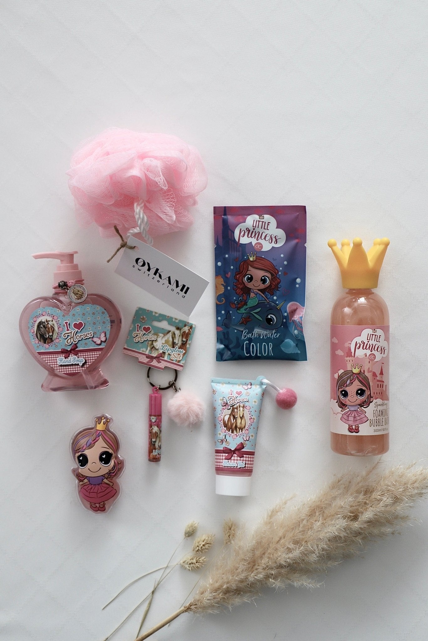 – Pflegeset im Prinzessinnen Design, inkl. 60ml Schaumbad, 50g Badebombe / Badekugel, 10g Netzschwamm, Duft: Strawberry Cheesecake, Farbe: Rosa/Weiss/Gold