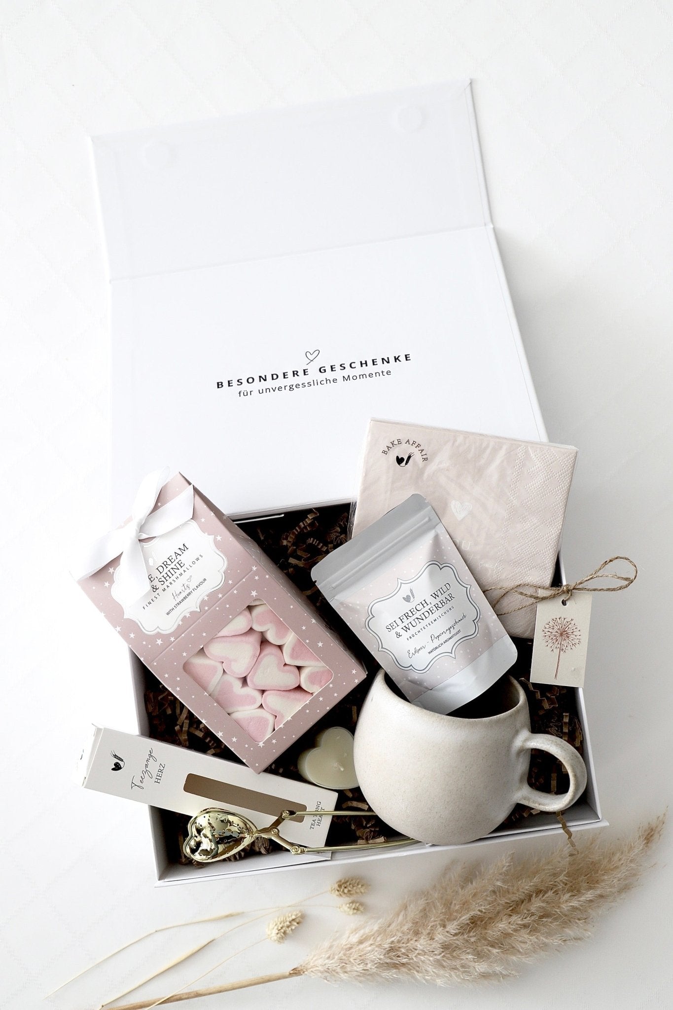 Verpackt in einem hochwertigen, stabilen Magnetkarton mit schöner Schleife, ist sie sofort bereit zum Verschenken und bleibt als stilvolle Aufbewahrungsbox lange erhalten ♡