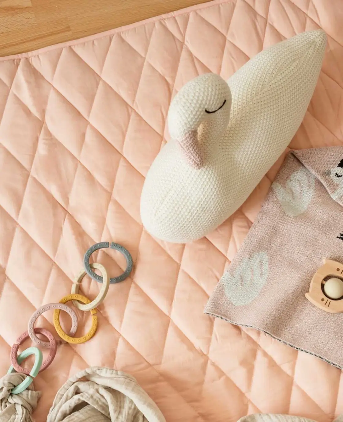 Dieser aus Baumwolle gestrickter Schwan ist der perfekte Kumpane für all die kleinen Prinzessinnen da draussen.