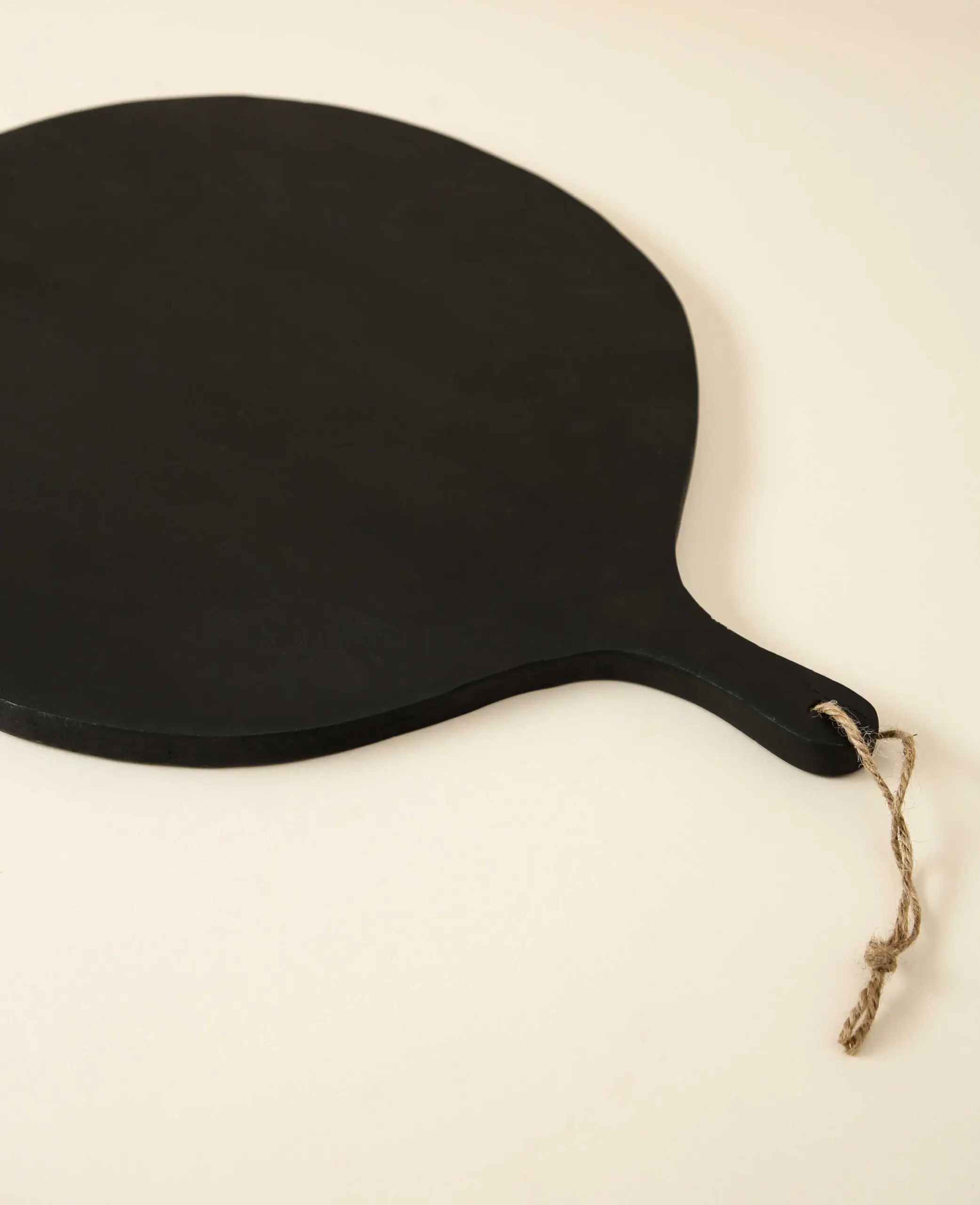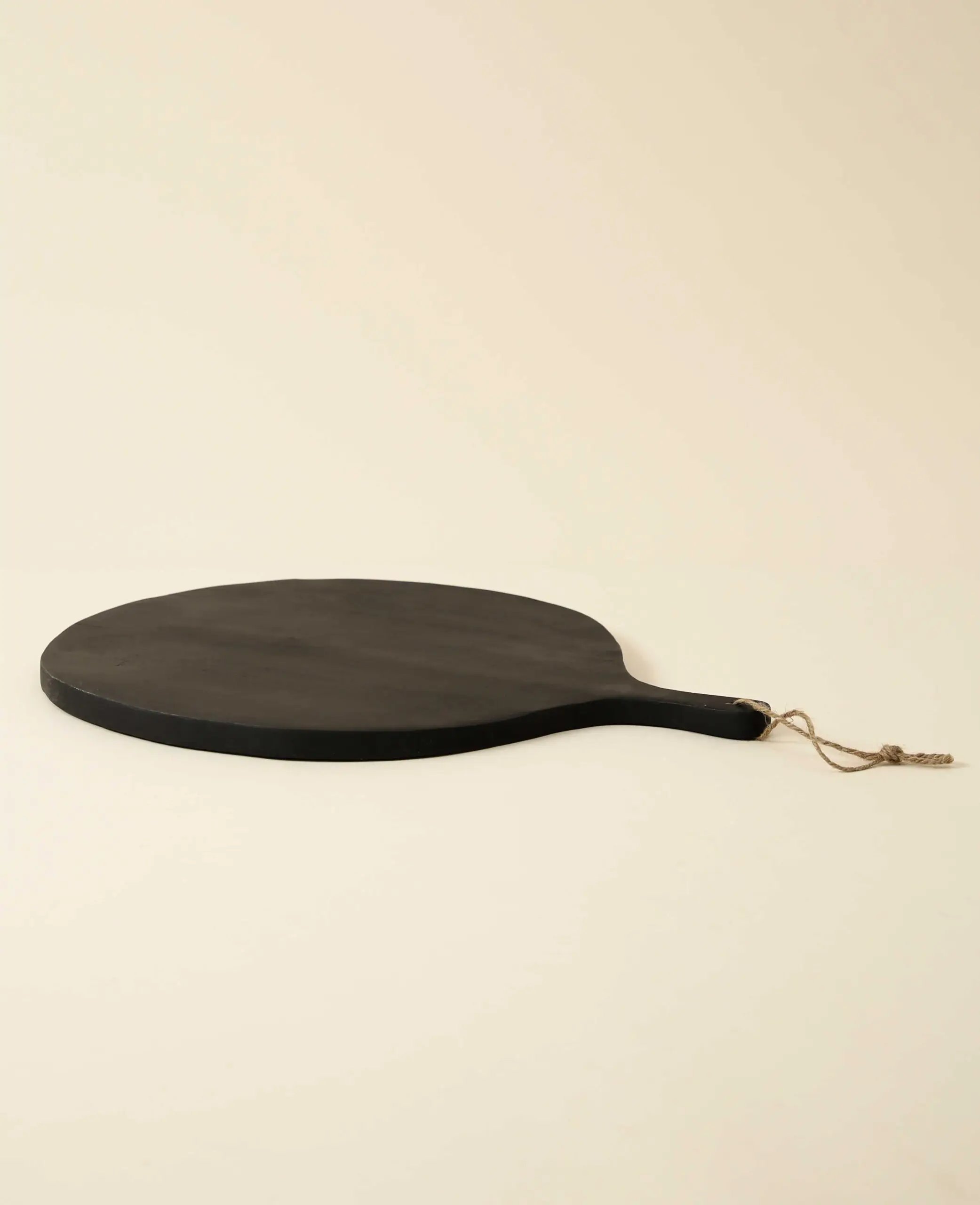 Unser rundes, schwarzes Holzbrett lässt sich vielseitig einsetzen. Ideal für den Apero, zum Zubereiten von Speisen oder als Dekoteller, ist es aus robustem und pflegeleichtem Mangoholz geschaffen.