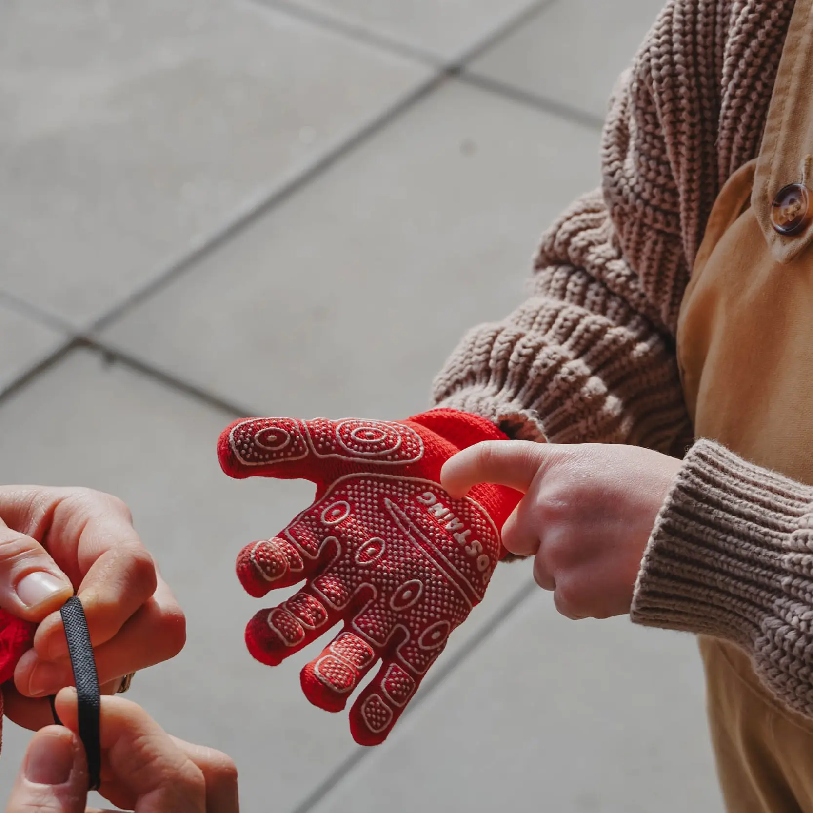 Kinderhandschuh aus 100 % Polyamid für leichte Gartenarbeiten. PVC-Siebdruck auf der Handfläche. Guter Komfort ohne Naht. Mit Riemen damit der Handschuh nicht verloren geht.