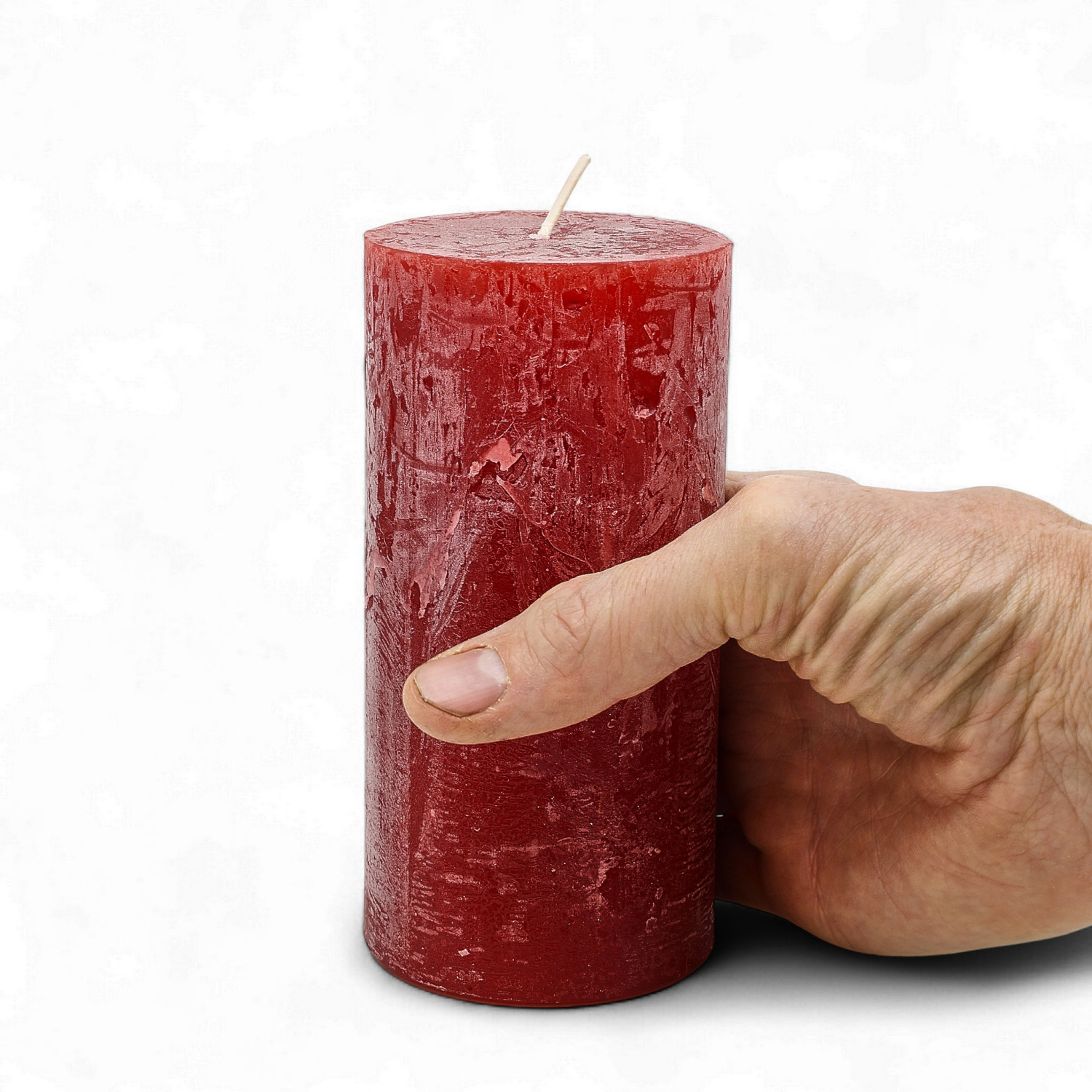 Die RUSTIC Kerzen in klassischem Rubinrot vereinen zeitlose Eleganz mit moderner Wohnästhetik. Ihre unverwechselbare, grob strukturierte Oberfläche und die matte, natürliche Farbgebung verleihen jeder Umgebung eine warme, authentische Stimmung – ideal für stilvolle Tischdekorationen, gemütliche Abende oder als liebevolles Geschenk.