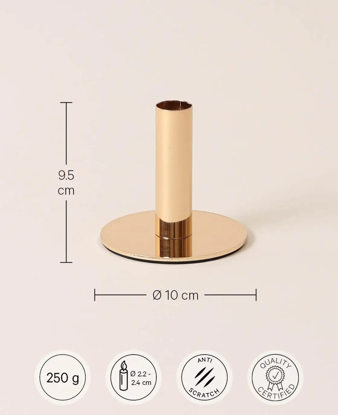 Tiefer Kerzenständer für Stabkerzen in Gold, 9 cm