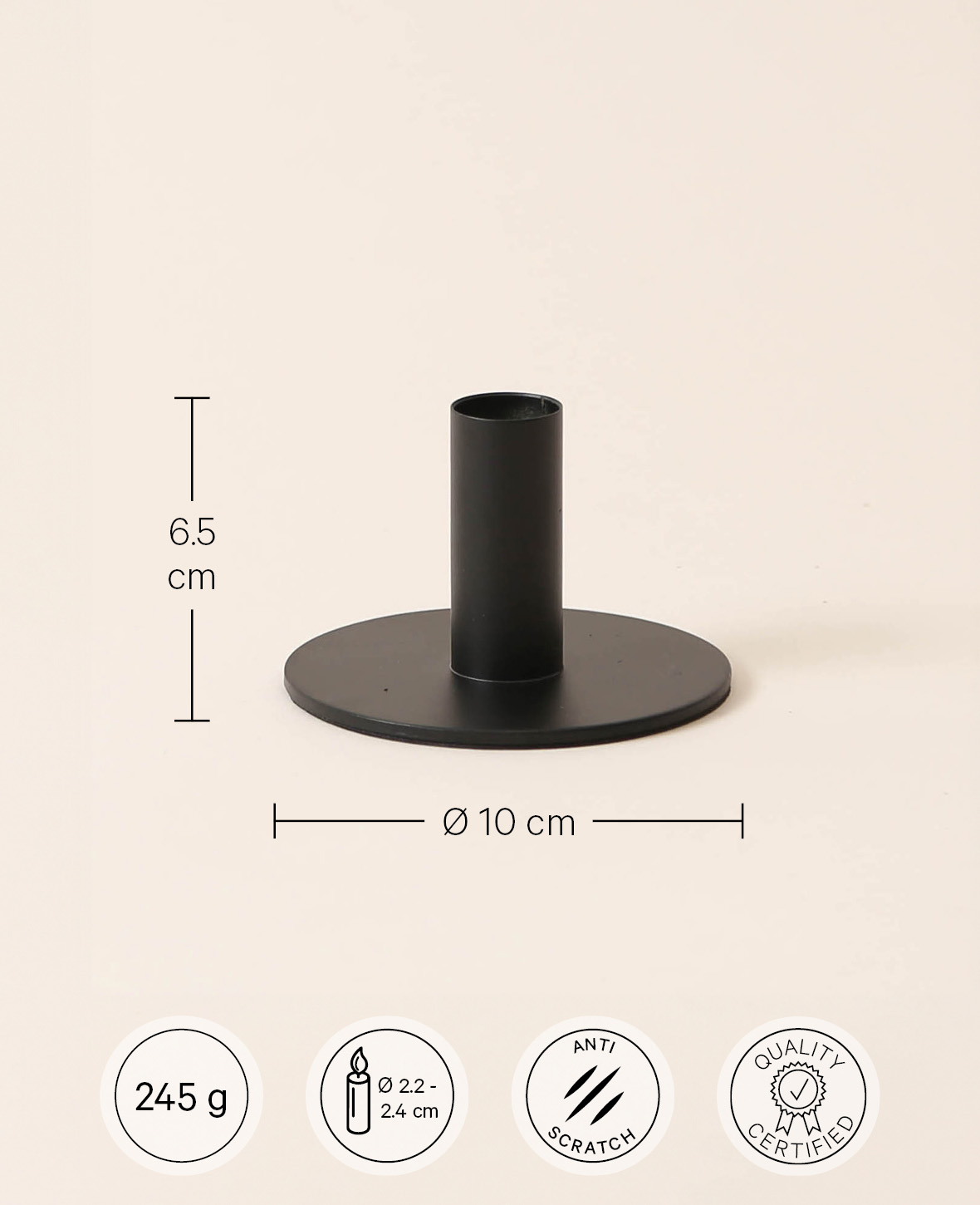 Kerzenständer für Stabkerzen in mattem Schwarz, H 6.5 cm