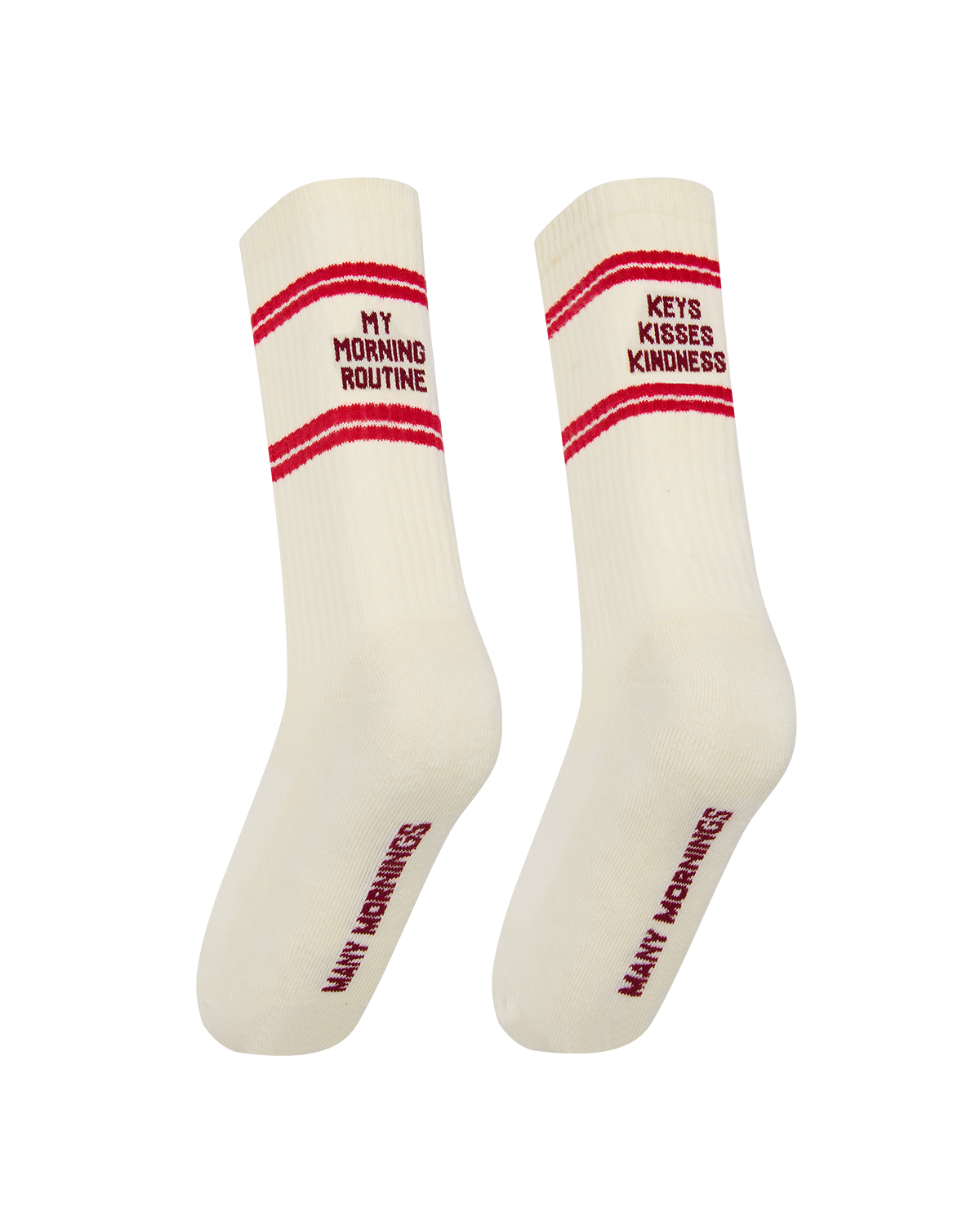 Nicht jeder Morgen ist ein Wettlauf gegen die Zeit. Manchmal öffnest du einfach die Augen, lächelst in die Welt oder drehst dich zu deinem Lieblingsmenschen für einen sanften Kuss. Es ist ein kleines Ritual aus Wärme und Ruhe – wenn der Kaffee nicht zu schnell kalt wird und die Gedanken ganz von selbst an ihren Platz fallen. Diese sanfteste aller Routinen schenkt dir den perfekten Start in den Tag – und genau dieses Gefühl steckt in unseren Kind Routine Socken.