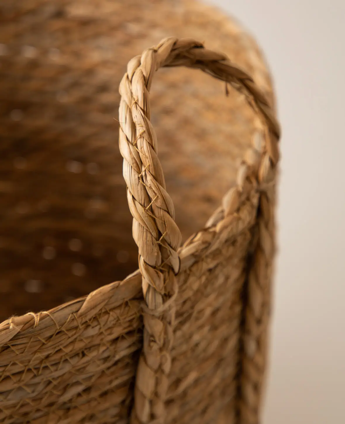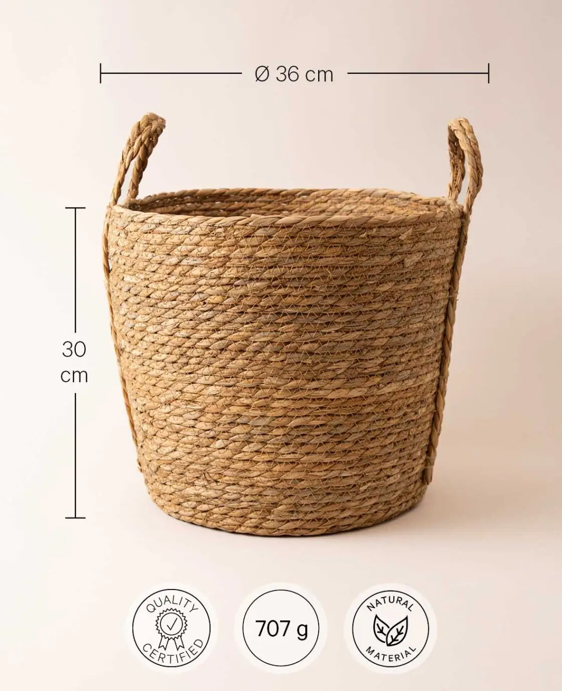 Unser Aufbewahrungskorb aus robusten Naturfasern bietet praktischen Stauraum mit Stil. Mit stabilen Handgriffen ausgestattet, eignet er sich ideal als Blumentopfhalter oder vielseitiger Aufbewahrungskorb. Verfügbar in drei Grössen.