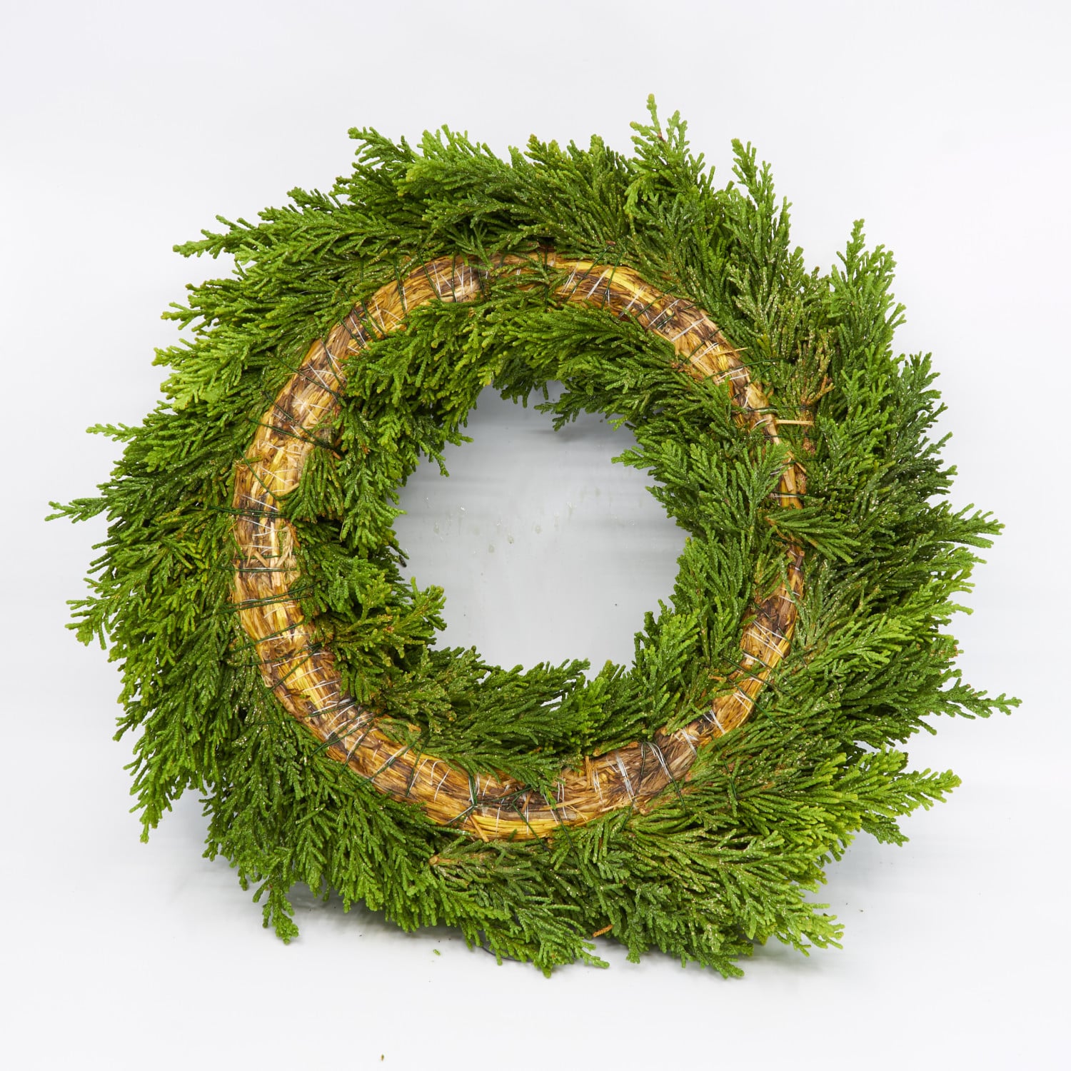 Von Hand gebundene Kränze für Adventskränze, Türschmuck, Kerzenteller oder weitere floristische Werkstücke. Gebunden auf eine 25cm Strohunterlage mit gemischter Konifere.