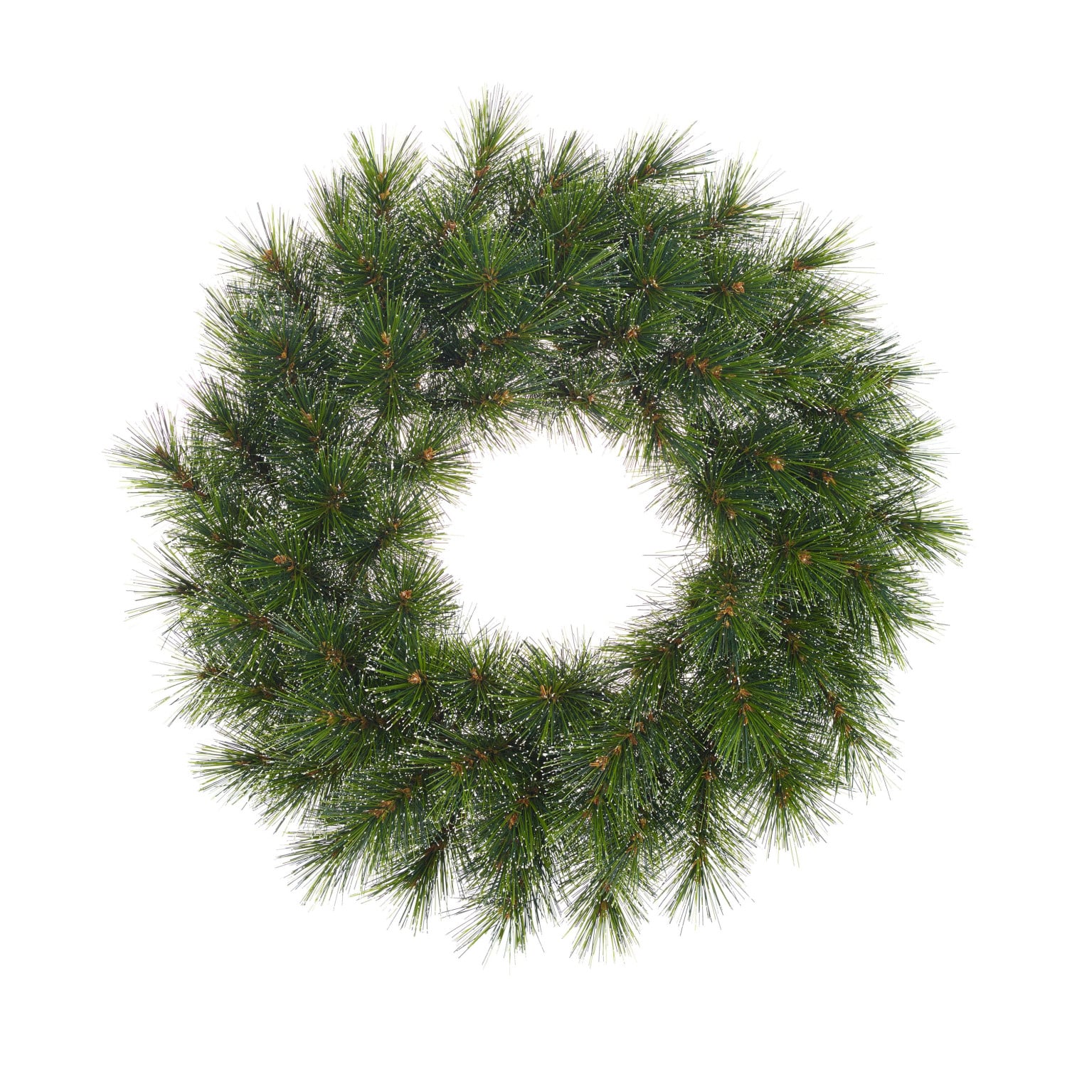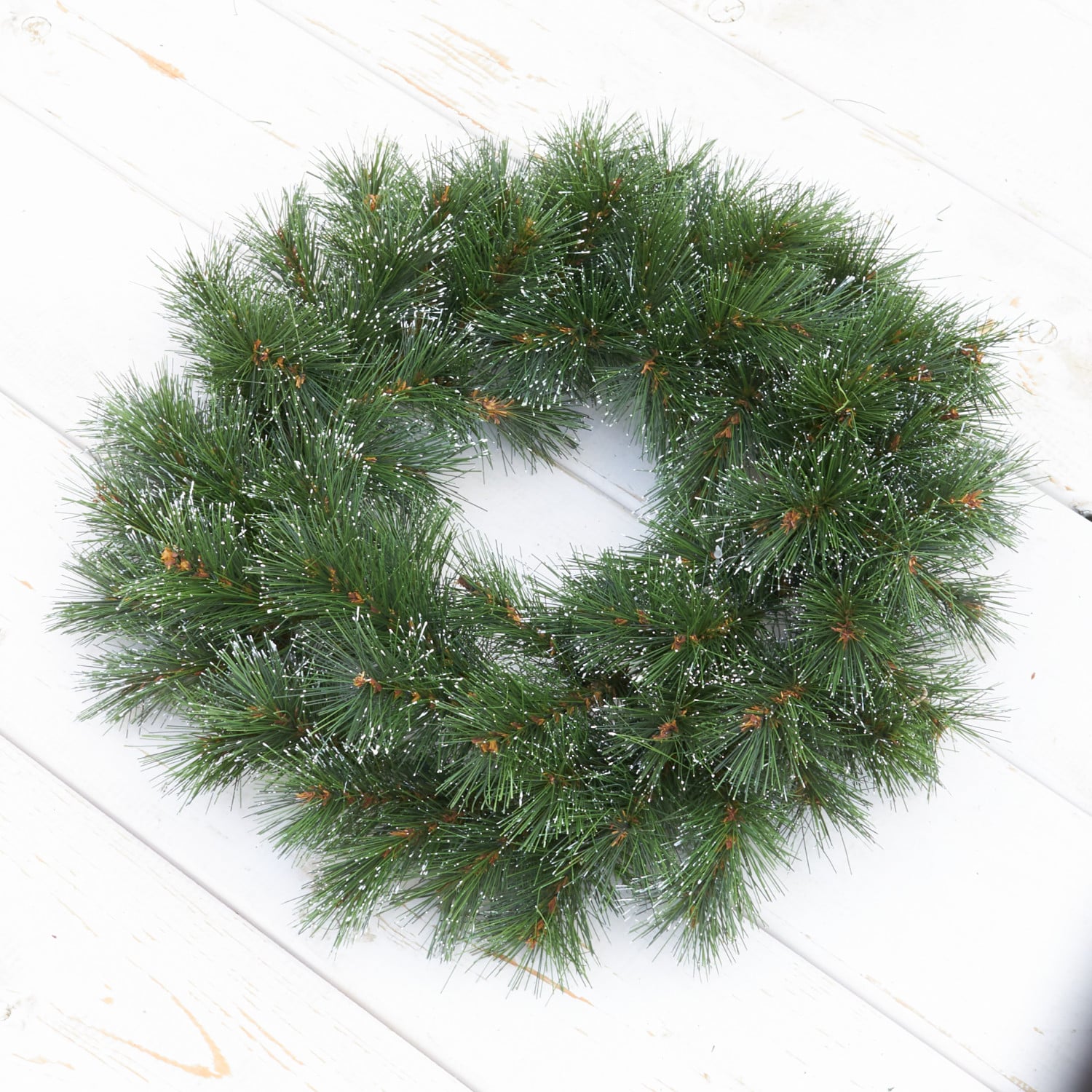 Künstliche Grünkränze haben den Vorteil, dass sie jedes Jahr wiederverwendet werden können, nicht nadeln und kein Wasser benötigen. Dieser Kranz kann auch ideal auf einem Tisch platziert werden.