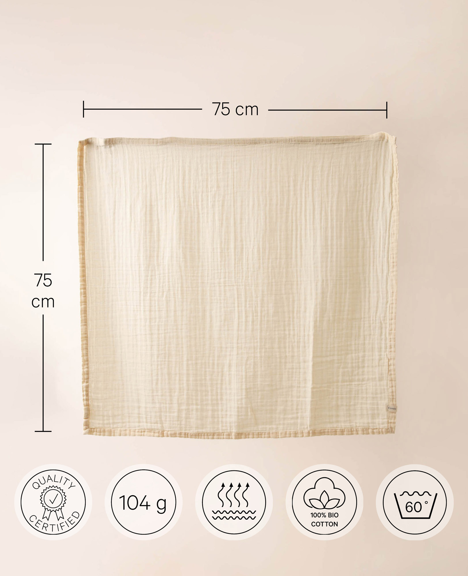 • Mulltuch aus Baumwolle-Musselin in Vanillegelb, 75 x 75 cm