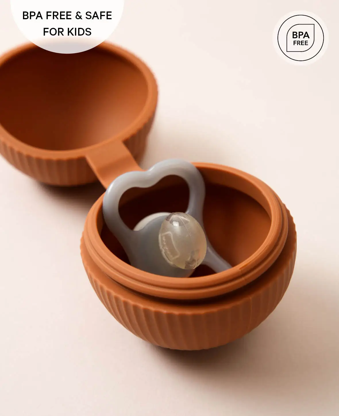 Nuggietui / Schnullerhalter / Aufbewahrungsetui aus Silikon in Rostrot