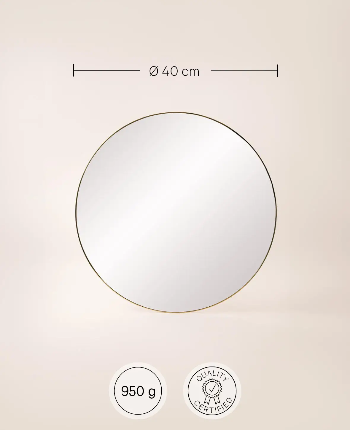 Schlichter runder Wandspiegel mit goldenem Rahmen, Ø 40 cm