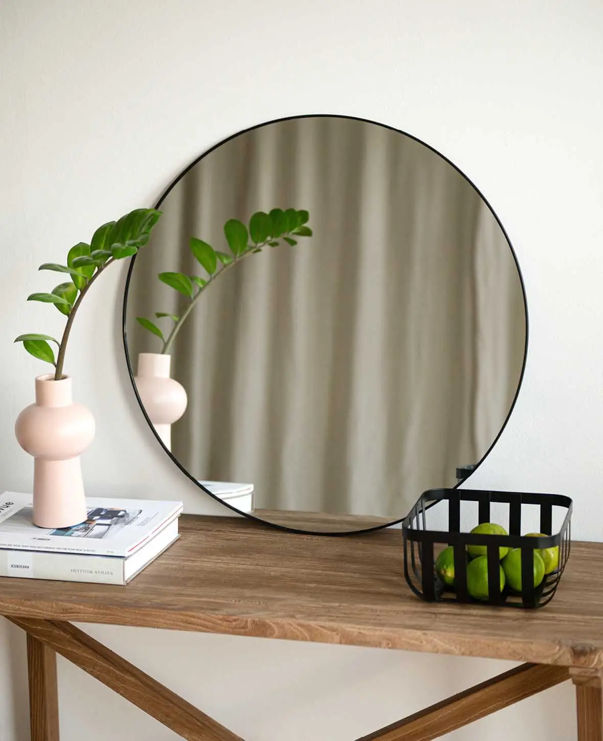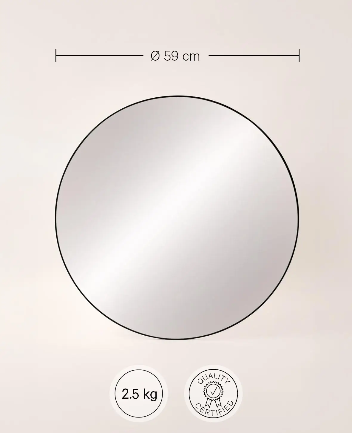 Schlichter runder Wandspiegel mit schwarzem Rahmen, Ø 59 cm