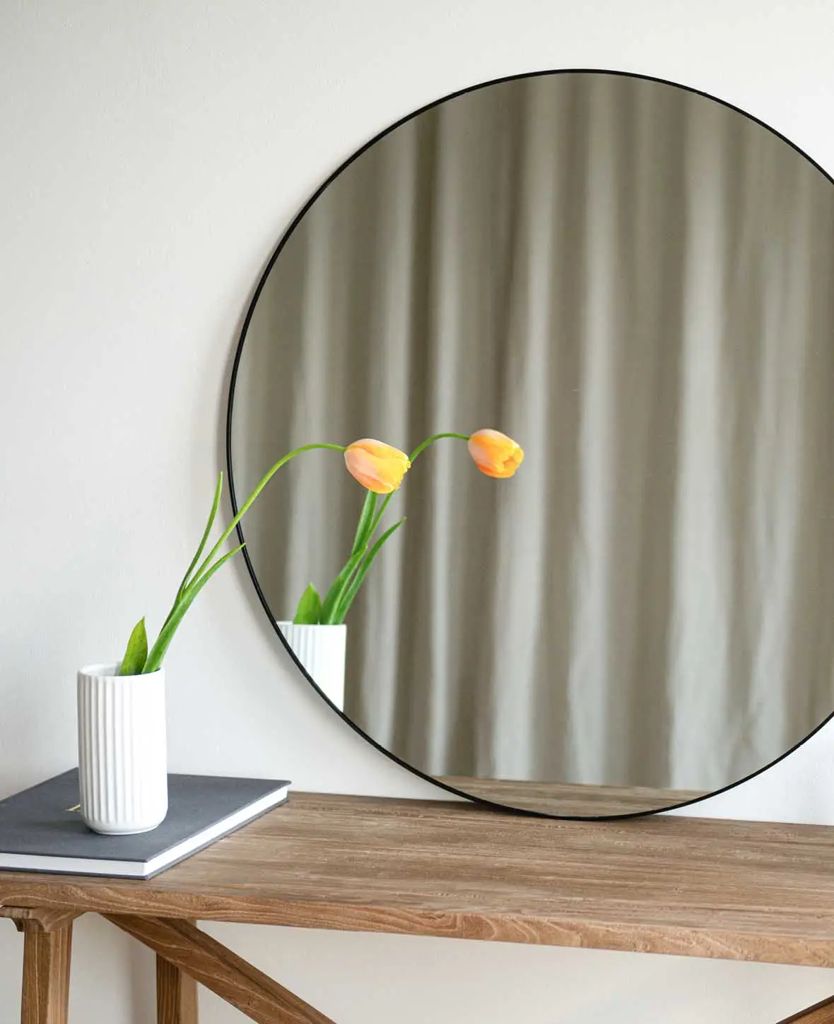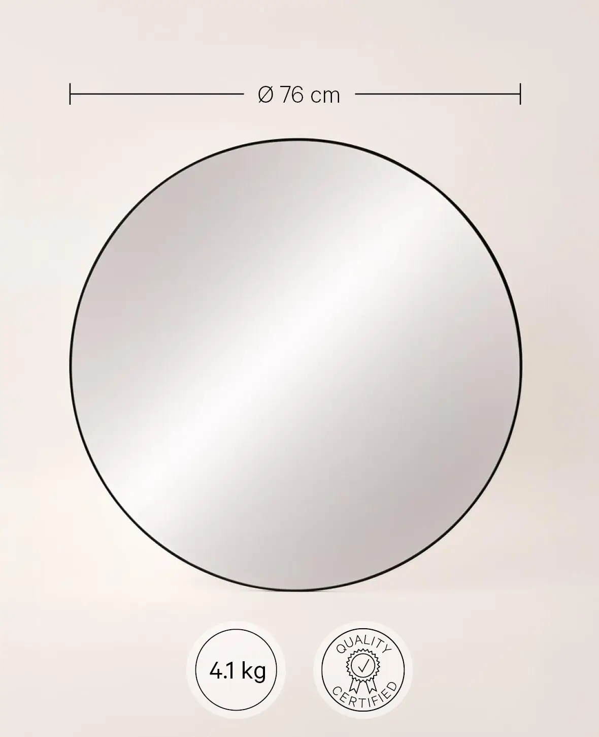 Schlichter runder Wandspiegel mit schwarzem Rahmen, Ø 76 cm