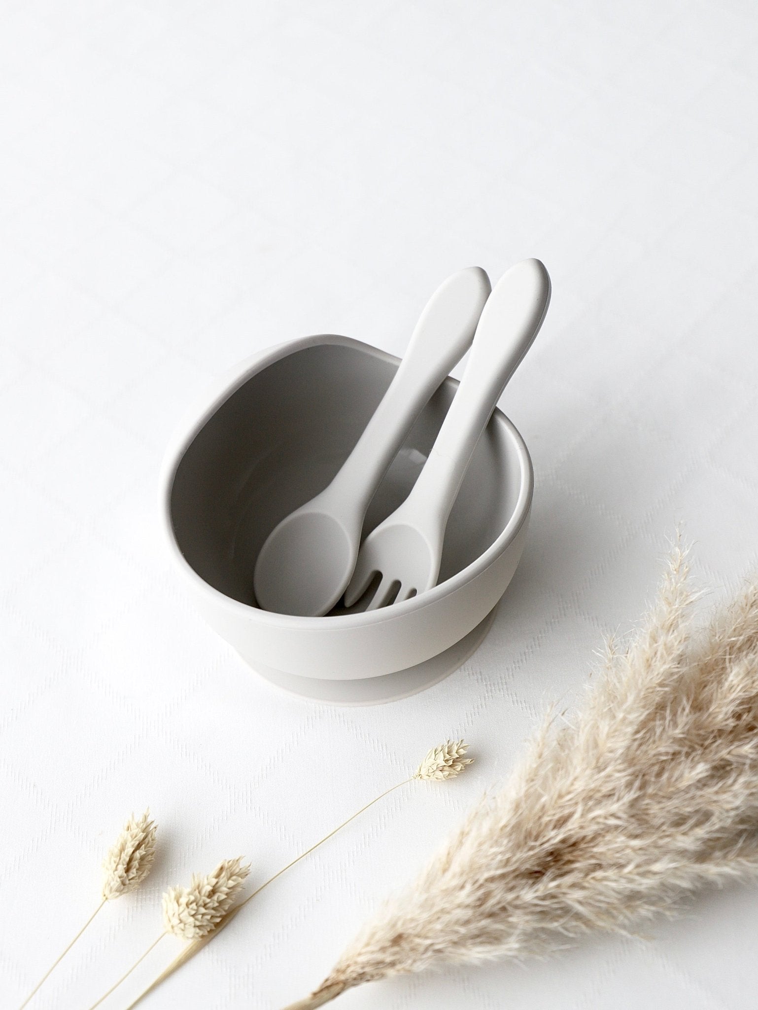 Unsere Silikon-Schalen sind ein echtes Must-have für die Beikostzeit. Sie sind hitzebeständig und durch den Saugnapf an der Unterseite besonders kippsicher. Im Set enthalten sind ein passender Löffel und eine Gabel aus weichem Silikon – sanft zum Babygaumen.