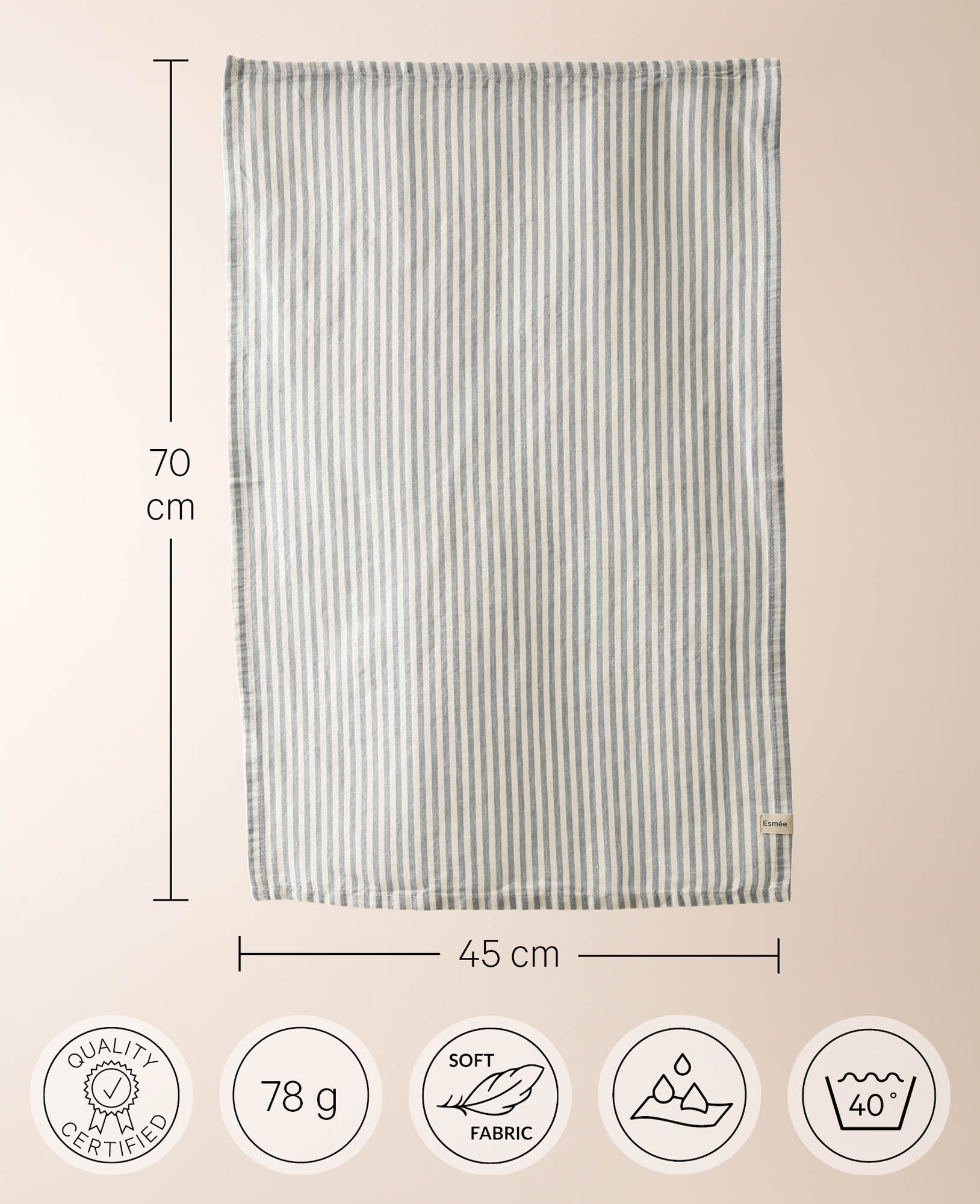 Mit einer Grösse von 45 x 70 cm bietet es ausreichend Platz, um Geschirr und Gläser mühelos abzutrocknen. Dank der angenehmen Textur des Tuchs werden Gegenstände dabei nicht zerkratzt.
