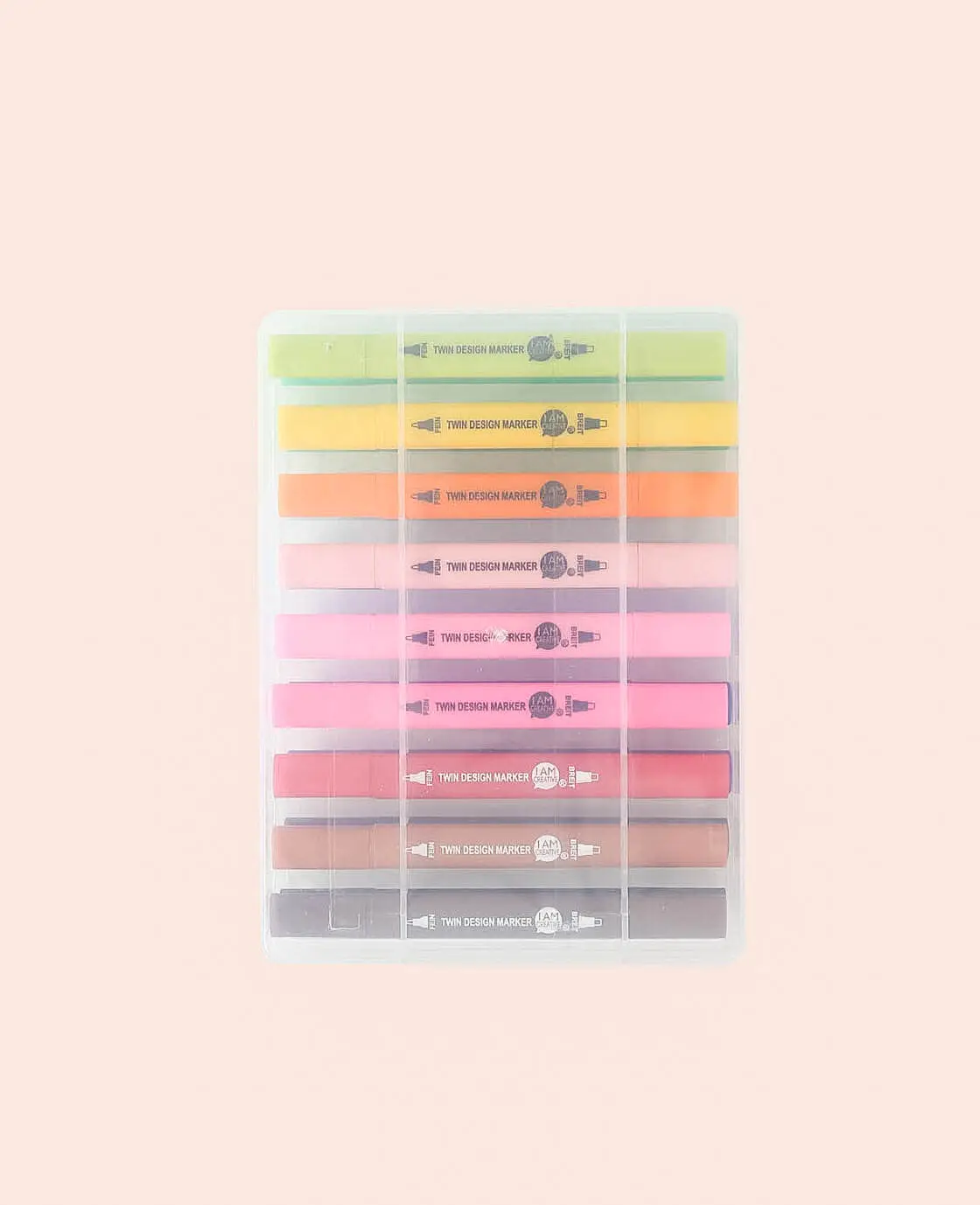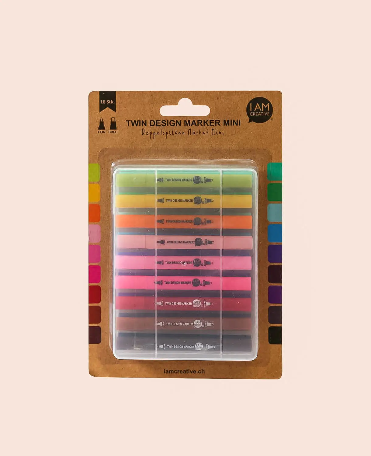 Die farbstarken Twin Design Marker eignen sich hervorragend für Handlettering, zum Zeichnen, Malen, Kolorieren und Illustrieren. Die kleinformatigen Stifte in der praktischen Aufbewahrungsbox sind ideal zum Zeichnen für unterwegs. Sie verfügen über eine feine Stiftspitze an einem Ende und eine breite, abgeschrägte Spitze für feine und breite Striche auf der anderen Seite. So ist es möglich, verschiedene Techniken anzuwenden. Die präzisen Spitzen sorgen für exzellente Kantenschärfe sowie für fliessend variierende Strichbreiten und die 18 Farbtönen ermöglichen eine fast unbegrenzte Anzahl an Farbkompositionen. Setze den Deckel nach Gebrauch sofort wieder auf, damit die Spitze nicht eintrocknet.