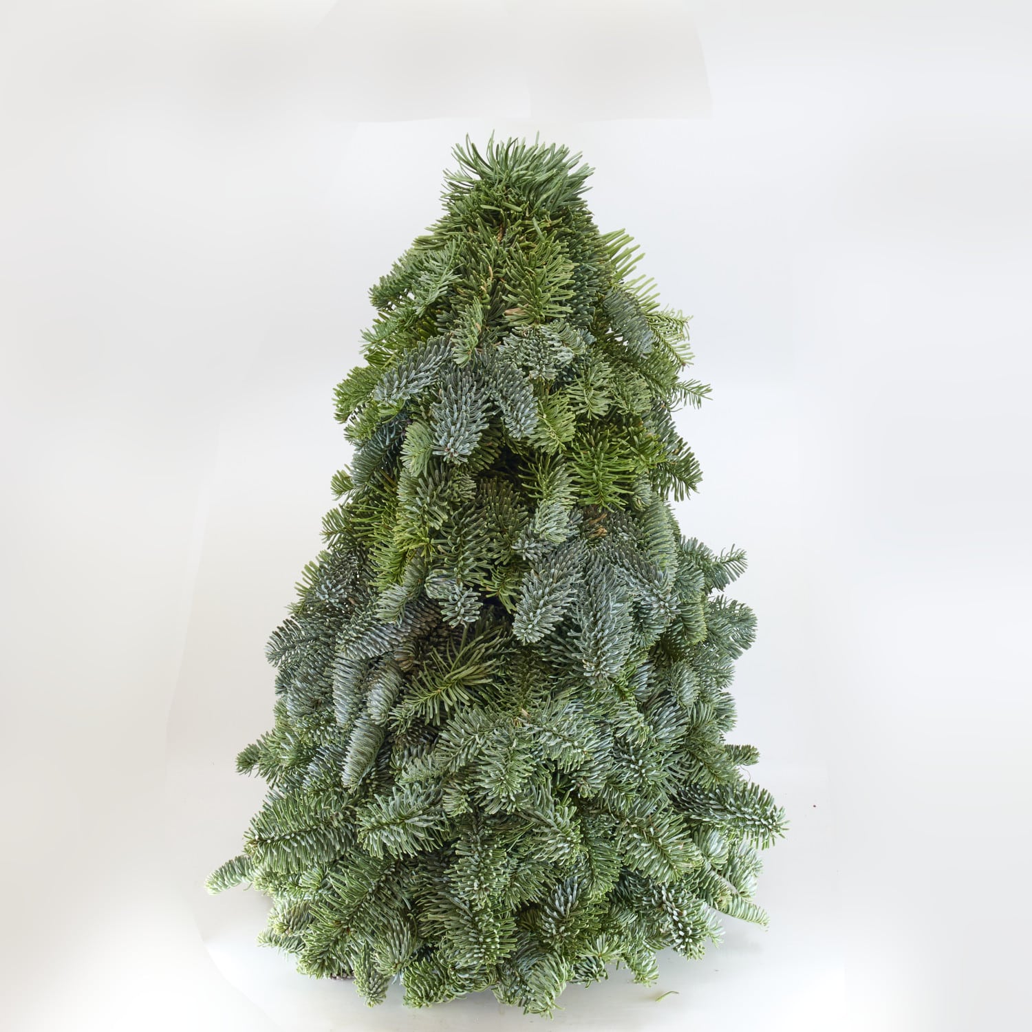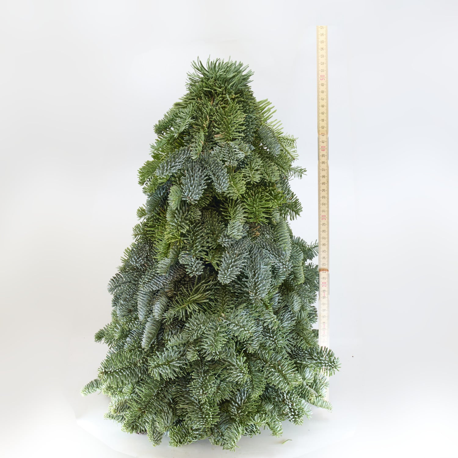 Dieser wunderschön handgefertigte Christbaum besteht aus Zweigen der Nobilistanne (Abies procera), die für ihr langlebiges, duftendes Laub bekannt ist. Jeder Baum wird sorgfältig von Hand gebunden, um ein volles, üppiges Aussehen und natürlichen Charme zu gewährleisten.