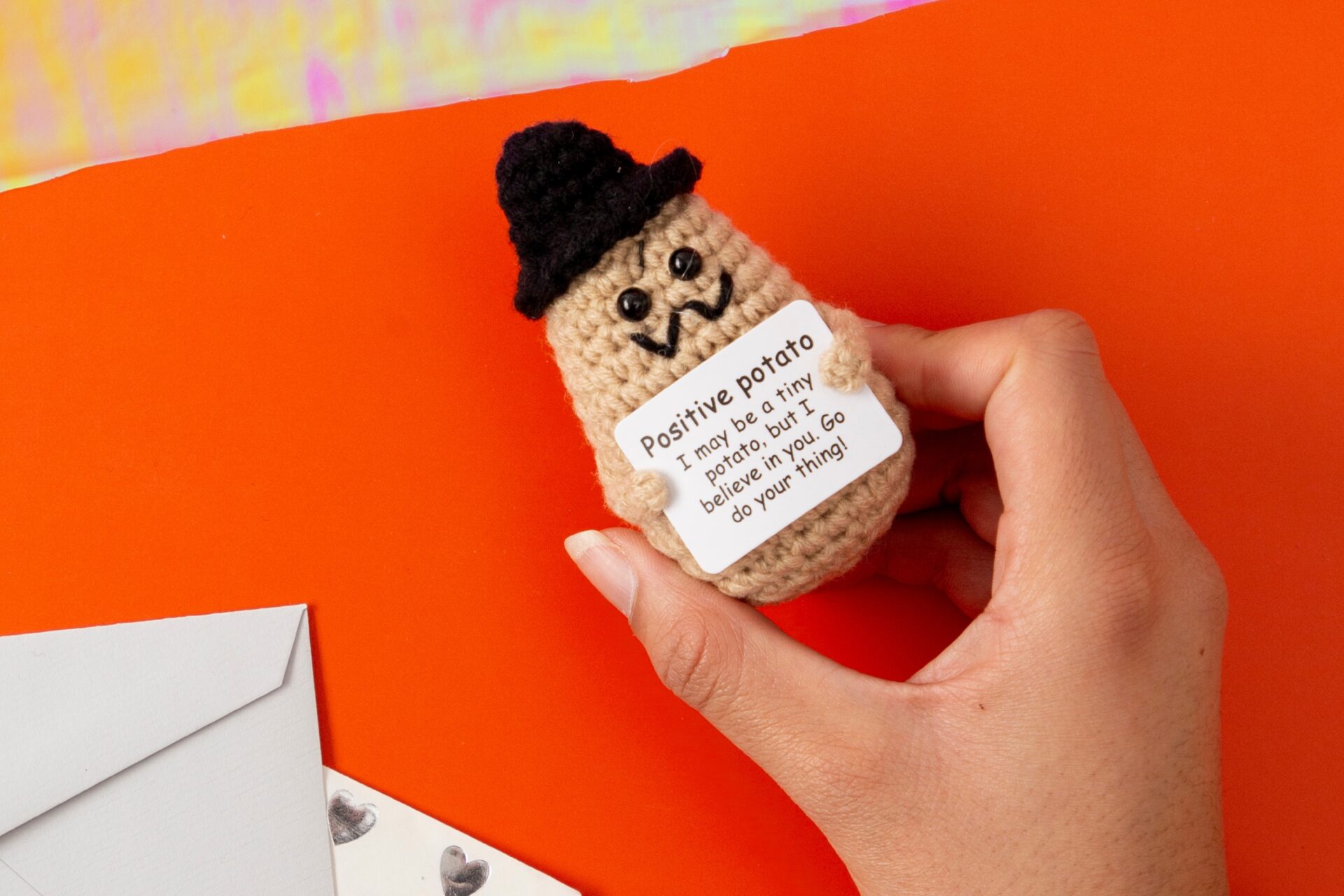 Les "Positive Potatoes" sont des figurines crochetées avec amour et accompagnées de messages inspirants. Elles sont parfaites comme cadeau ou comme compagnon personnel pour donner un sourire quotidien à toi et à ceux que tu aimes. Leur taille pratique en fait l'accessoire idéal pour la maison ou les déplacements.