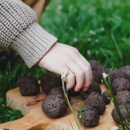 Wichtig: Maximal walnussgrosse Kugeln formen, da die Saat sonst anfängt zu keimen, bevor die Saatkugeln durchgetrocknet sind.