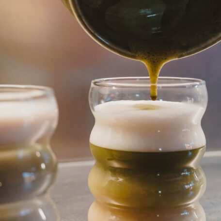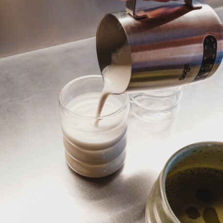 Mit aufgeschäumter Milch oder einer pflanzlichen Alternative wird Matcha zum sanften Alltagsbegleiter – warm oder eisgekühlt ein Genuss.