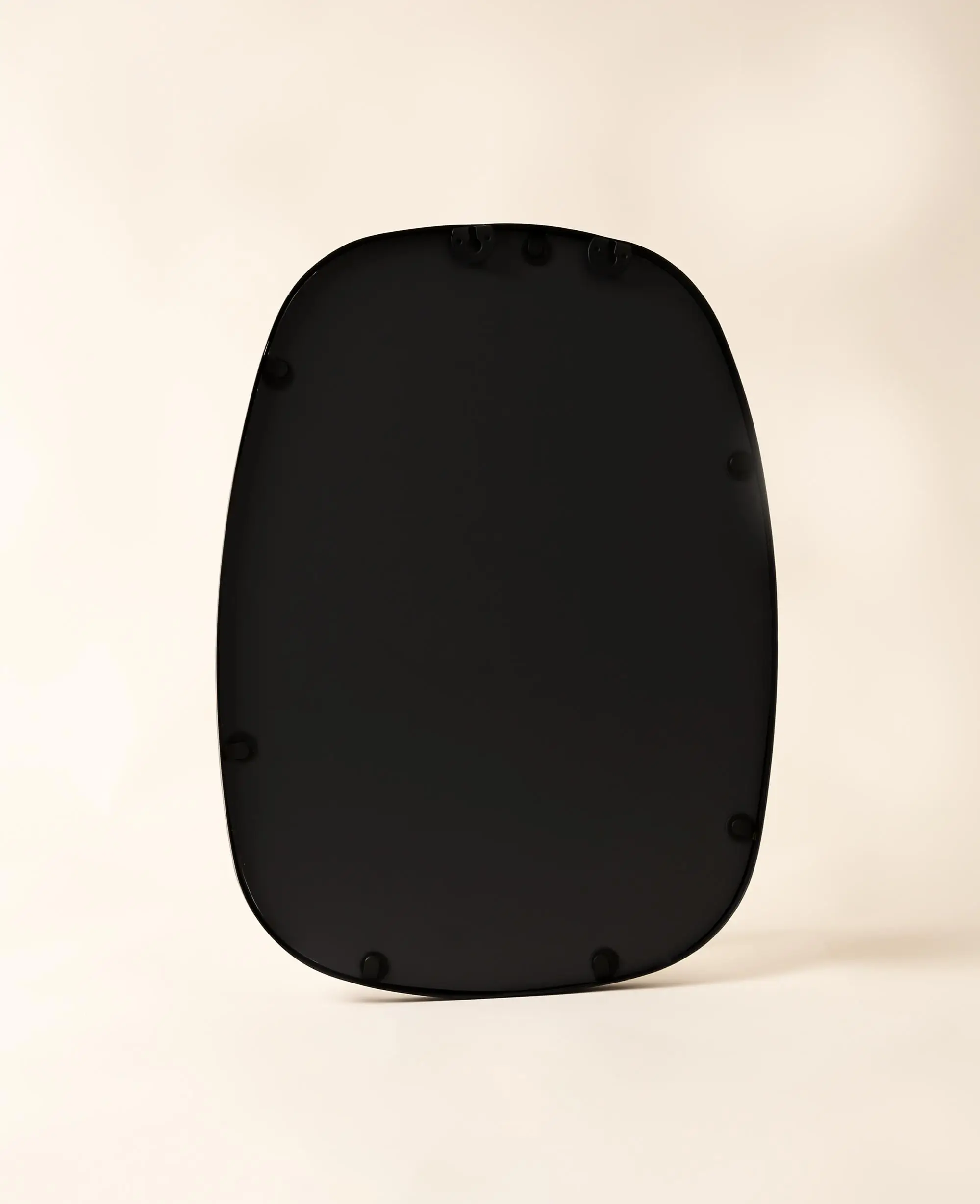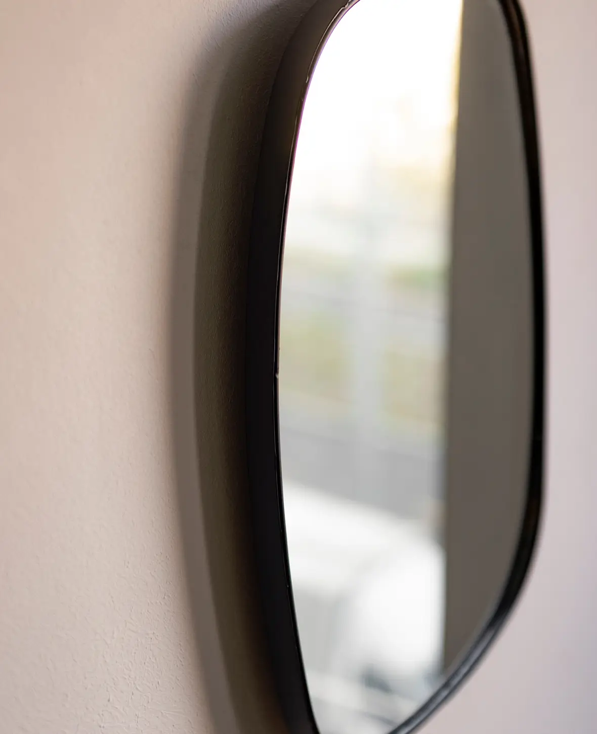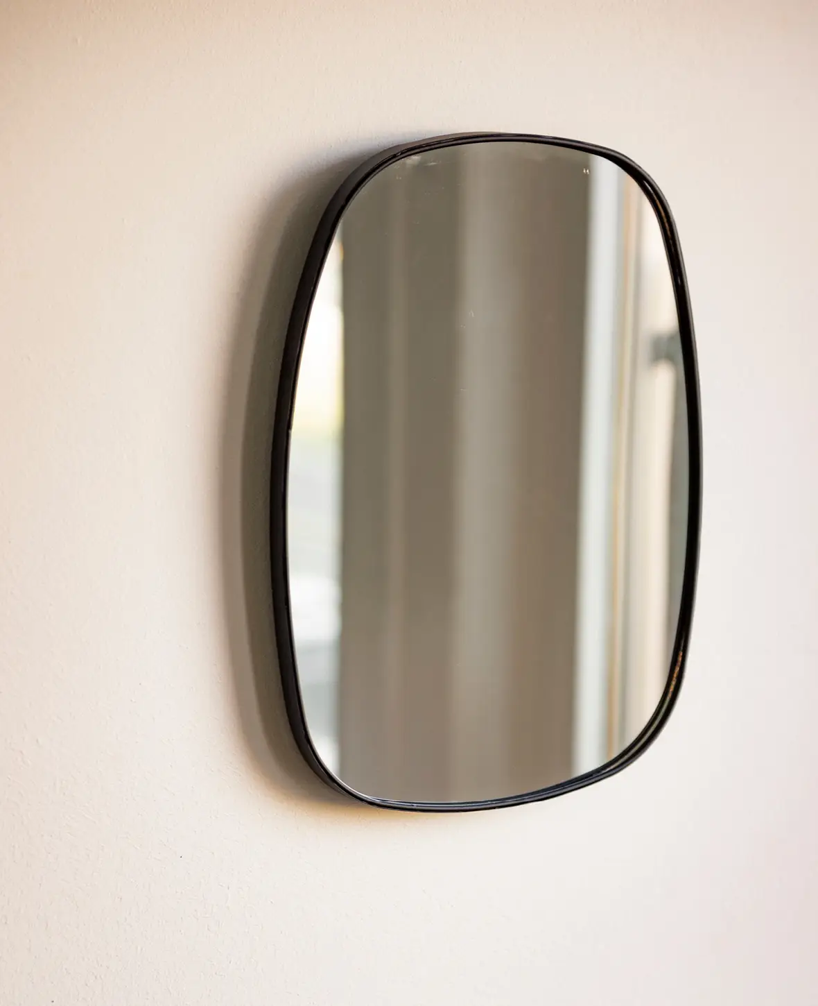Ovaler, asymetrischer Wandspiegel mit mattschwarzem Metallrahmen, 30 x 40 cm