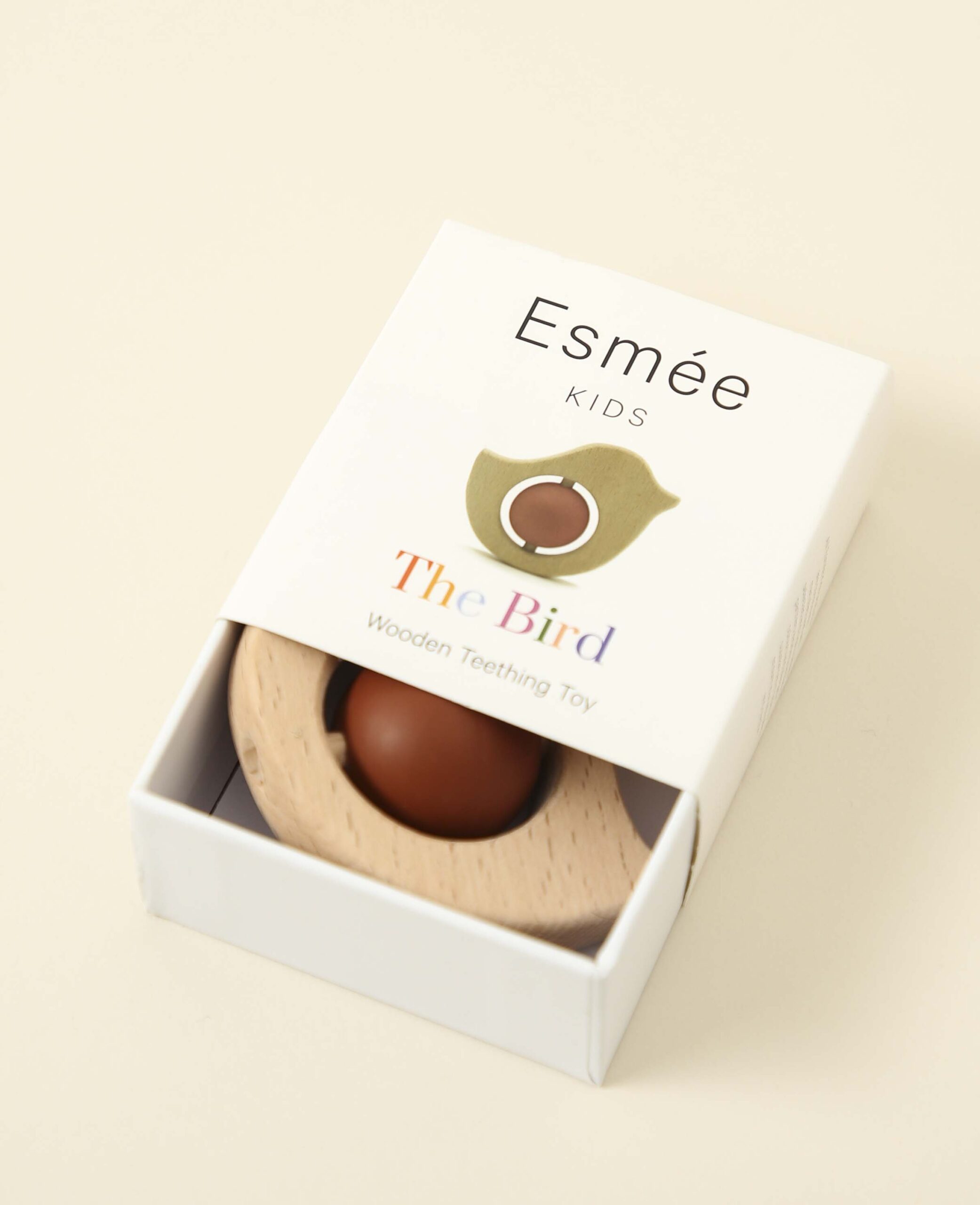 Vogel Beissring aus Buchenholz und Silikon für Kinder ab 3 Monate