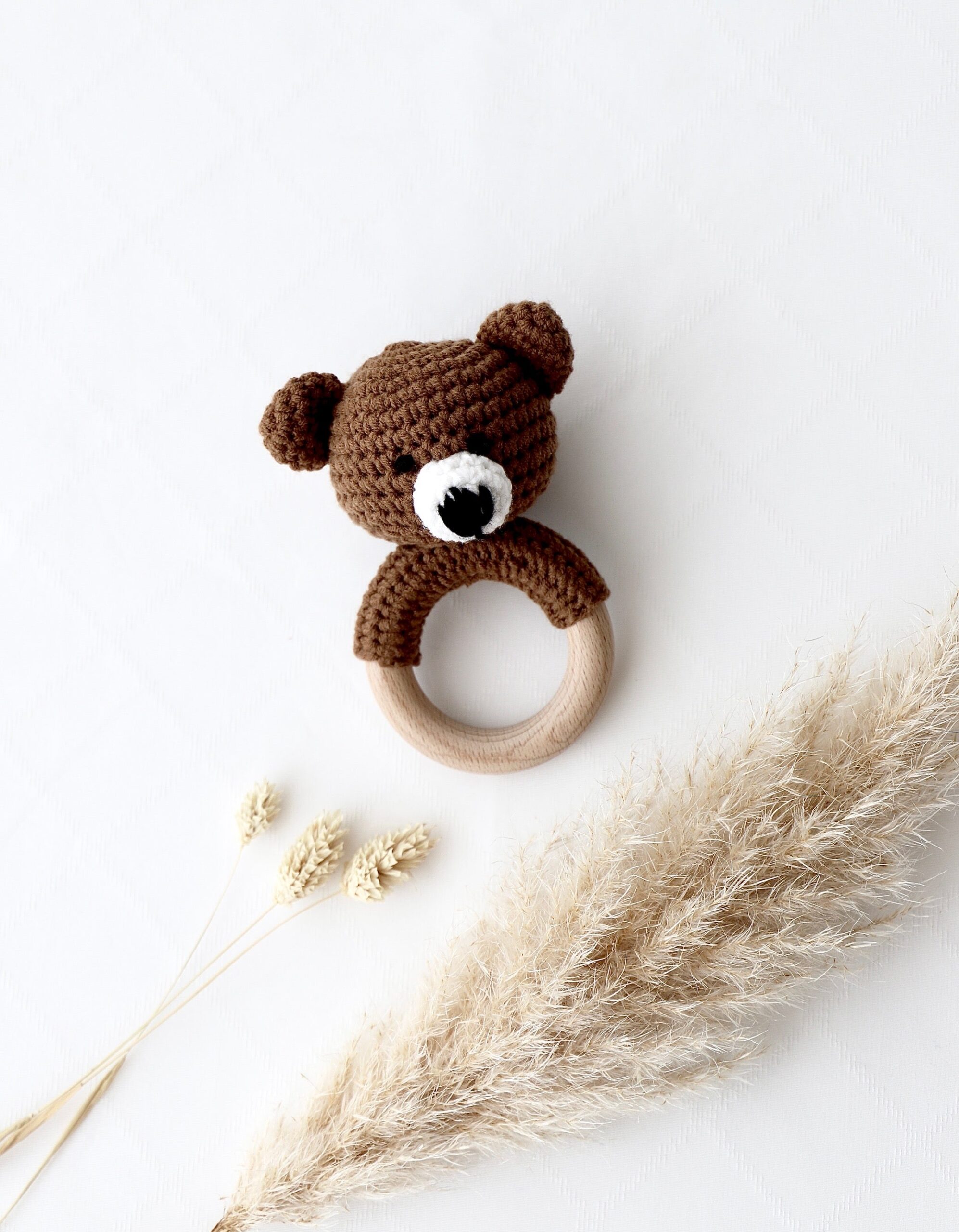 – handgehäkeltes Rasseltier «dunkler Bär» mit Glocke im Innern