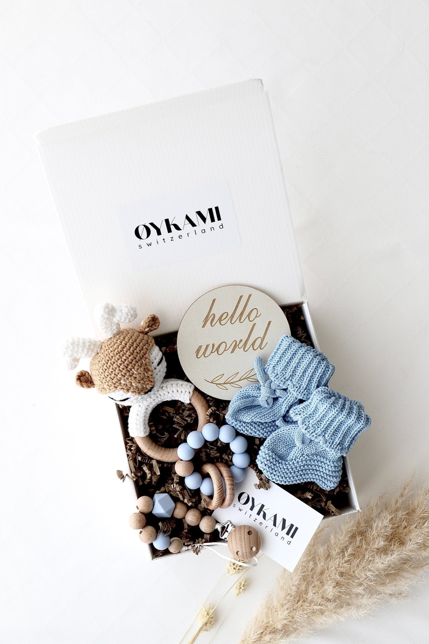 Un cadeau de naissance plein d'amour qui vient du cœur. Notre coffret cadeau OYKAMI „Phoenix“ a été composé avec soin pour capturer la magie des premiers jours et toucher autant les parents que le bébé.