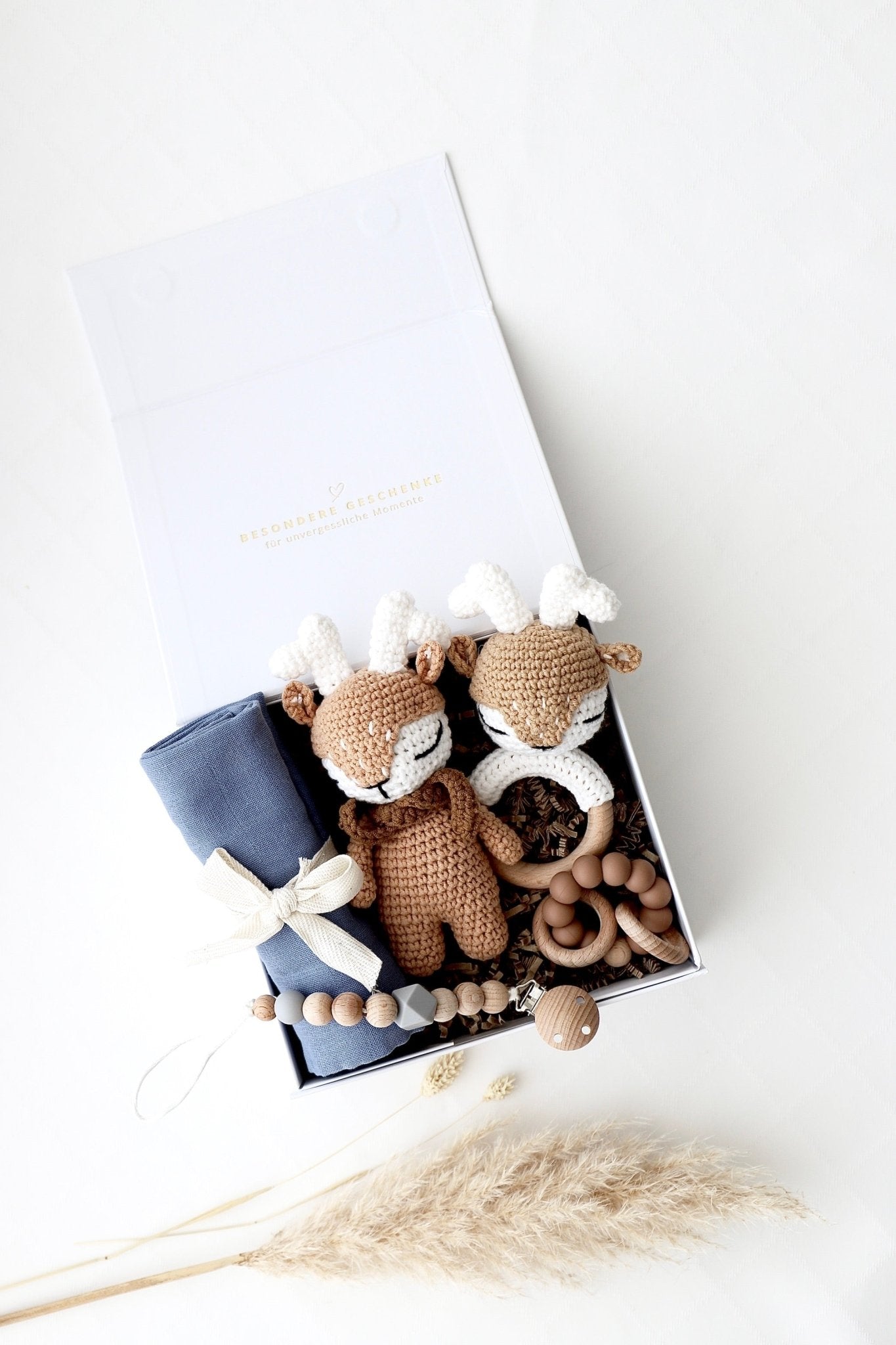 La naissance d'un bébé est un événement merveilleux qui doit être célébré avec joie et amour. Notre boîte cadeau maman-bébé est un geste affectueux pour féliciter les parents et souhaiter la bienvenue au nouveau-né. Dans notre boîte pour maman & bébé, soigneusement composée, tu trouveras une multitude de cadeaux affectueux pour le bébé et ses fiers parents. Notre boîte à cadeaux pour bébé est remplie de tout ce que le cœur désire pour adoucir le début de la vie.
