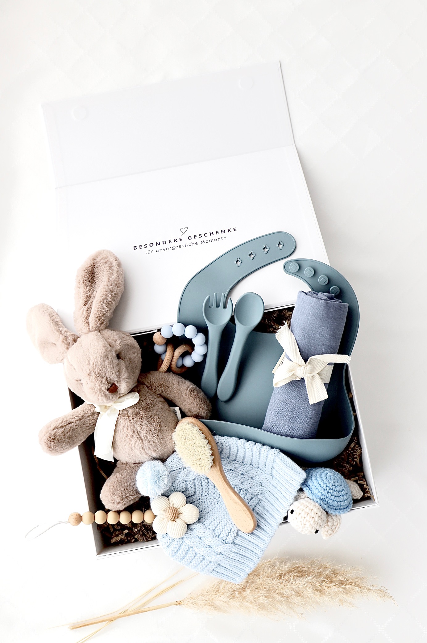 Unsere 9-teilige Baby-Geschenkbox enthält folgende Produkte: