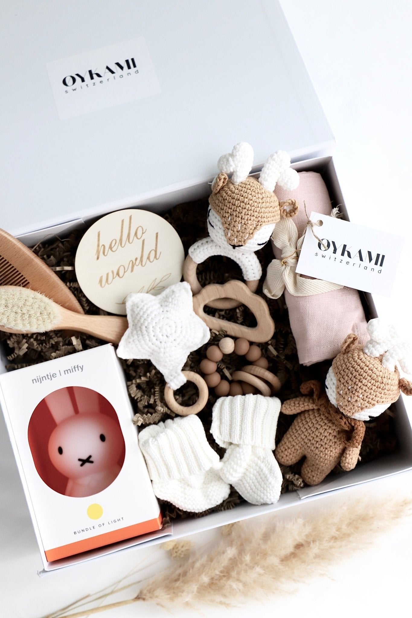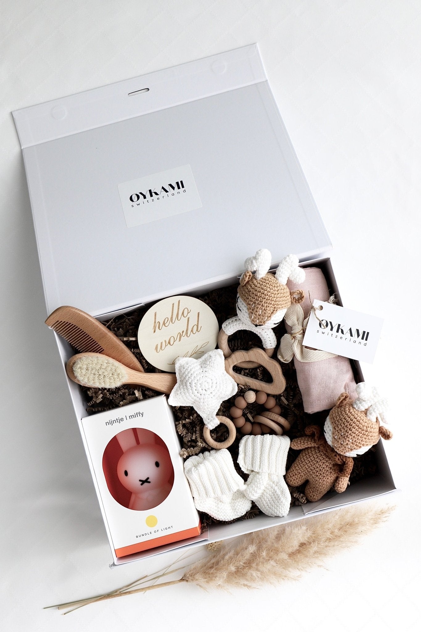 Dans notre boîte soigneusement composée, tu trouveras une multitude de cadeaux affectueux pour le bébé et ses fiers parents. Notre boîte à cadeaux pour bébé est remplie de tout ce que le cœur désire pour adoucir le début de la vie.