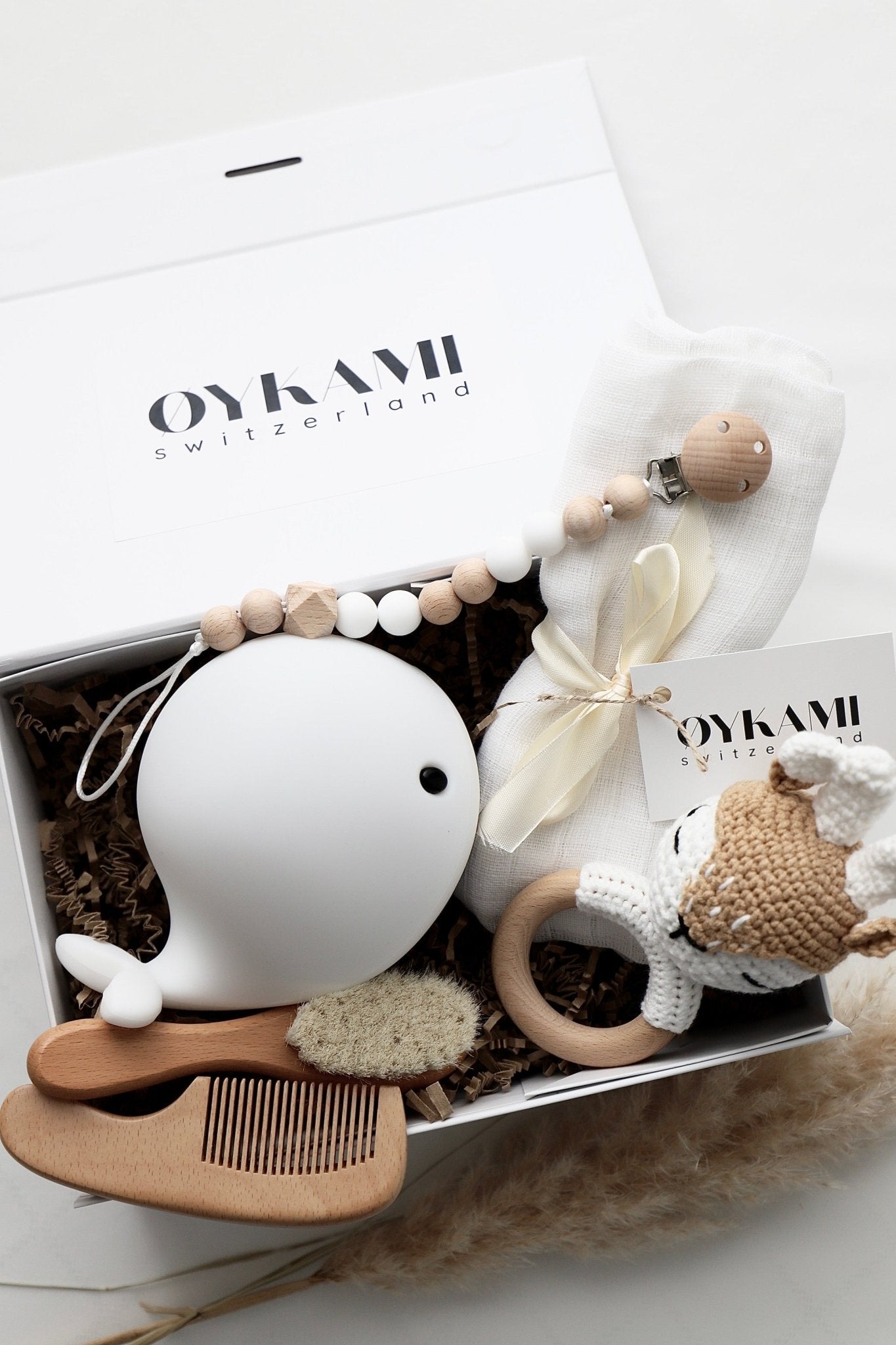 Unsere Baby-Geschenkbox eignet sich perfekt für Baby-Partys, Geburten oder einfach nur, um den Eltern zu zeigen, dass du an sie denkst und dich mit ihnen über den neuen Familienzuwachs freust. Mach dich bereit, das süsse Lächeln eines Babys zu erleben und die Liebe einer Familie zu spüren – mit unserer Baby-Geschenkbox, der die ersten Augenblicke des Lebens unvergesslich macht.