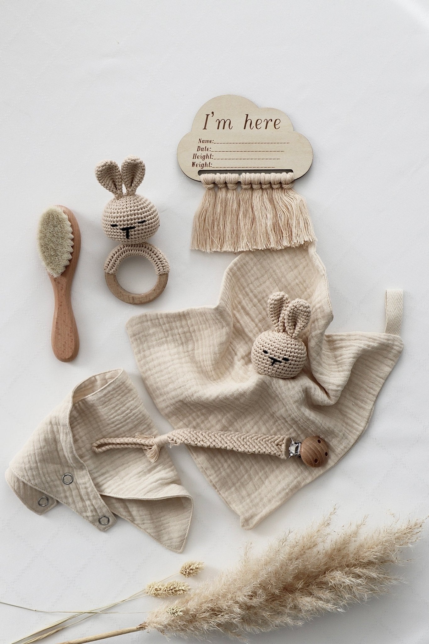 – 1 süsser gehäkelter Hase mit einem Nuscheli-Tuch aus Baumwolle