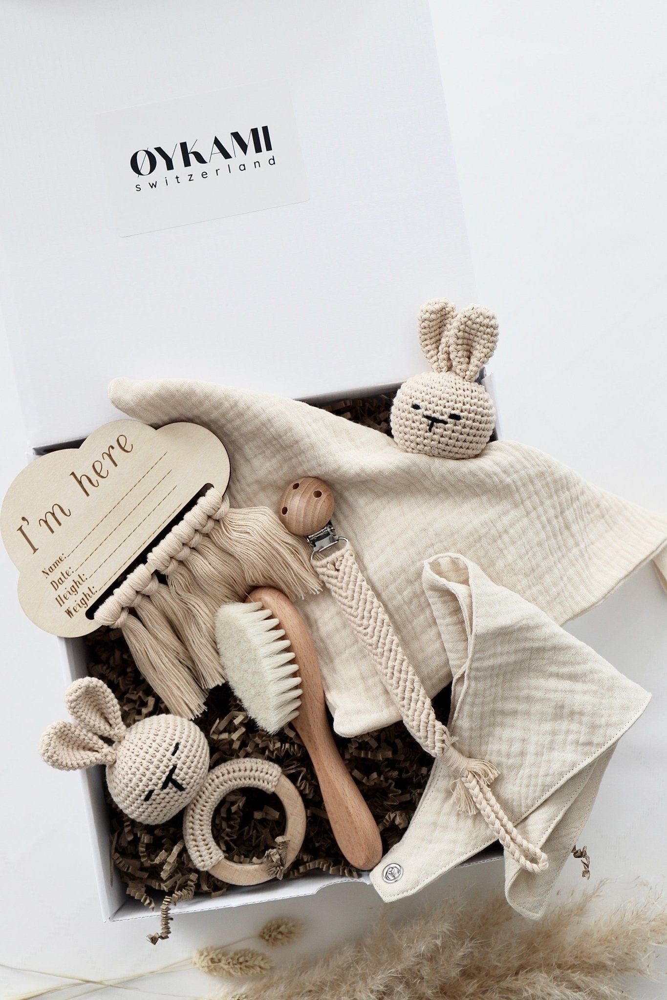 Jede Baby Geschenkbox wird von Hand für dich gepackt. Das Geschenk bekommst du in einem schönen weissen Karton und mit Schleife geliefert und kann somit sofort verschenkt werden.