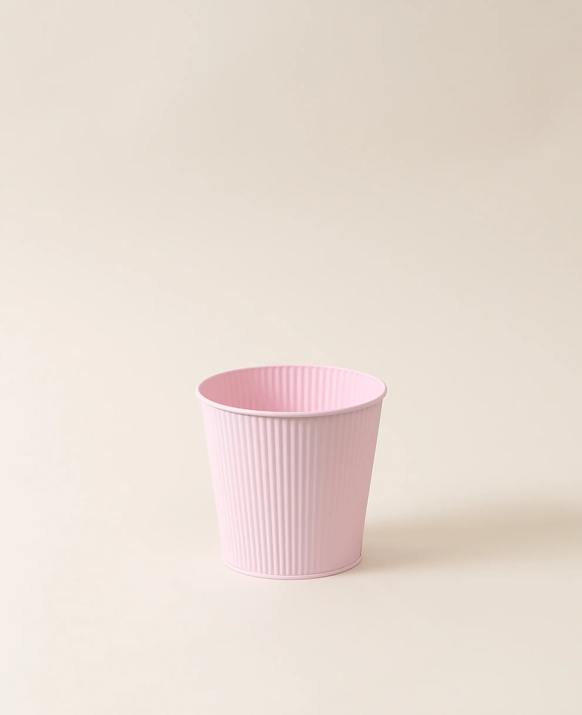 Blumentopf, Blechtopf in mattem Pastellton und hübschem Rillenmuster für Pflanzen oder als Dekobehälter, Rosa, ø 16 x 15 cm