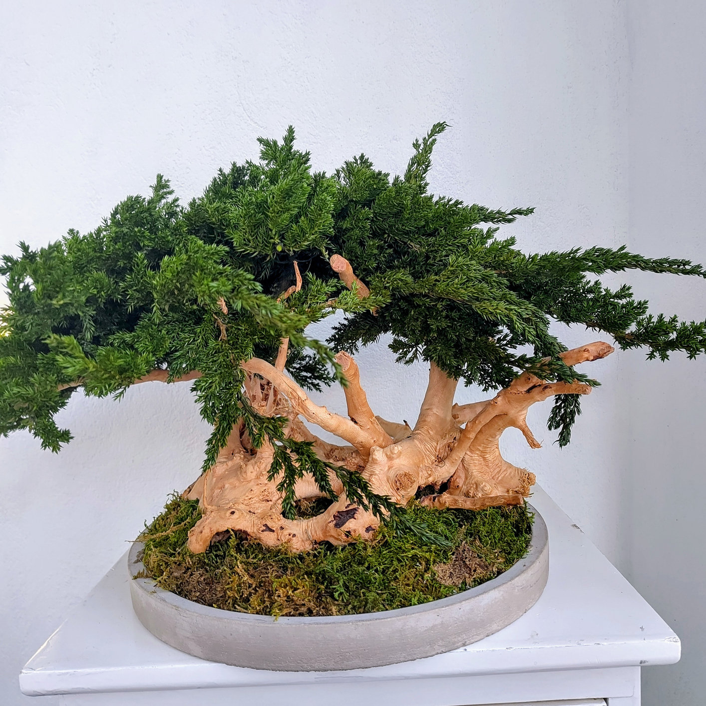 Quoi de plus beau que ce magnifique genévrier/bonsaï stabilisé, facile à entretenir, qui durera plusieurs années et fera le bonheur de nombreuses personnes.