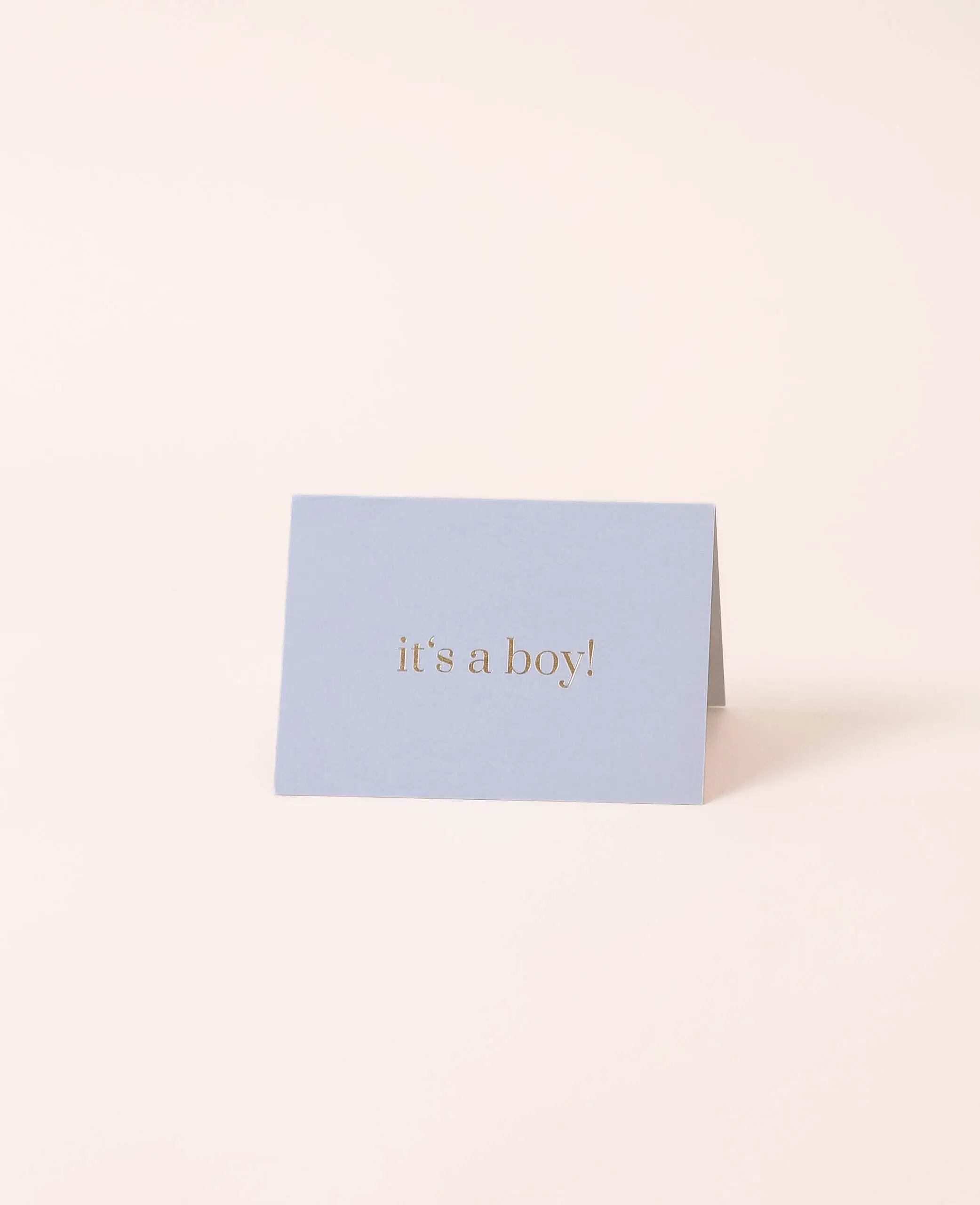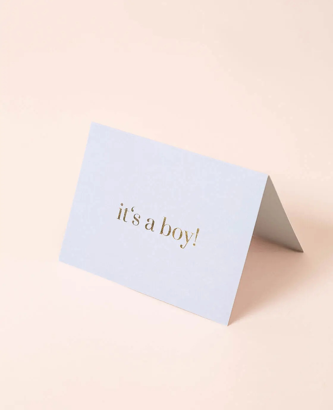 Carte à volet sobre et intemporelle pour féliciter le Gender Reveal et le nouveau-né garçon.