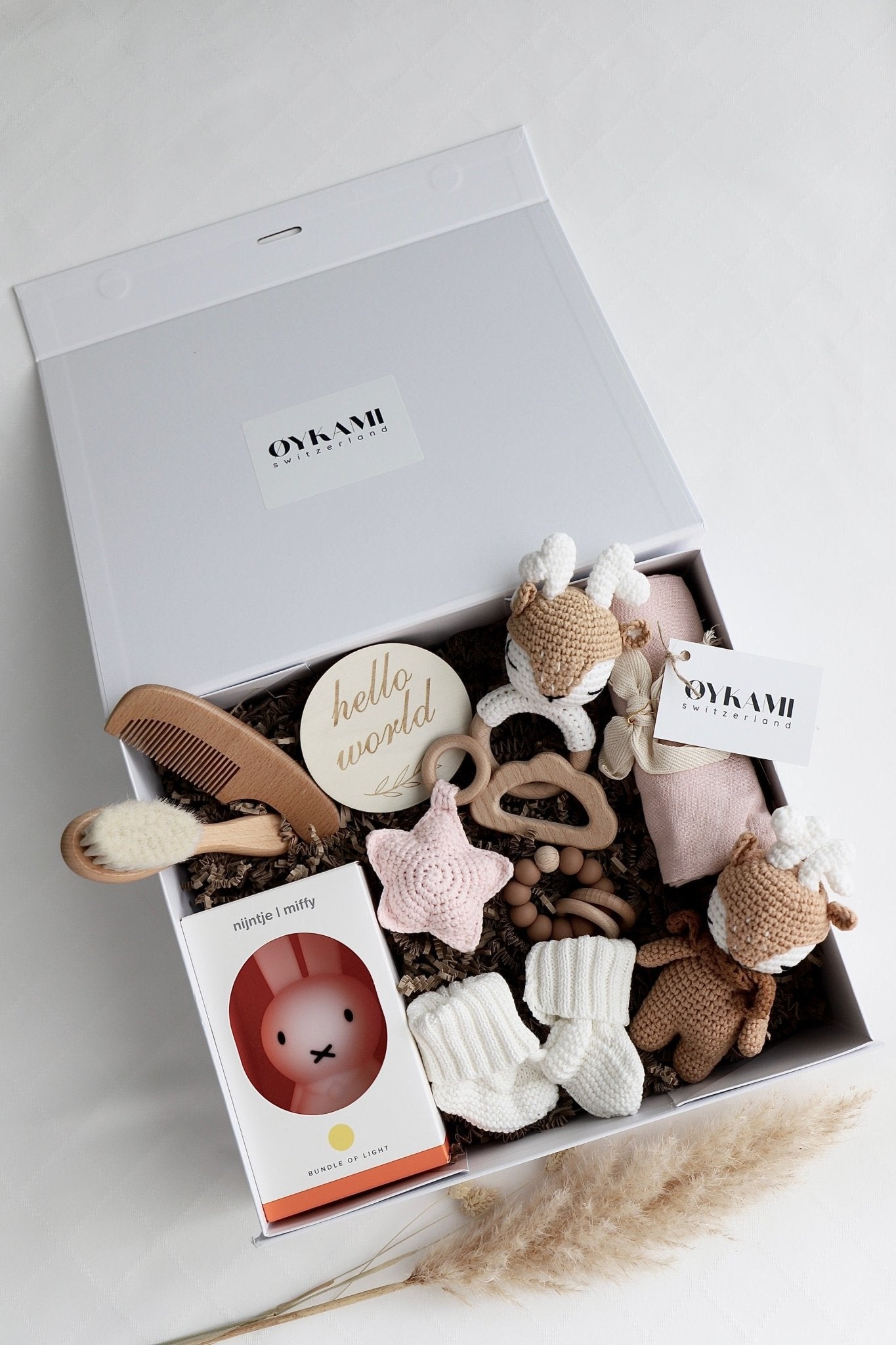Dans notre boîte soigneusement composée, tu trouveras une multitude de cadeaux affectueux pour le bébé et ses fiers parents. Notre boîte à cadeaux pour bébé est remplie de tout ce que le cœur désire pour adoucir le début de la vie.